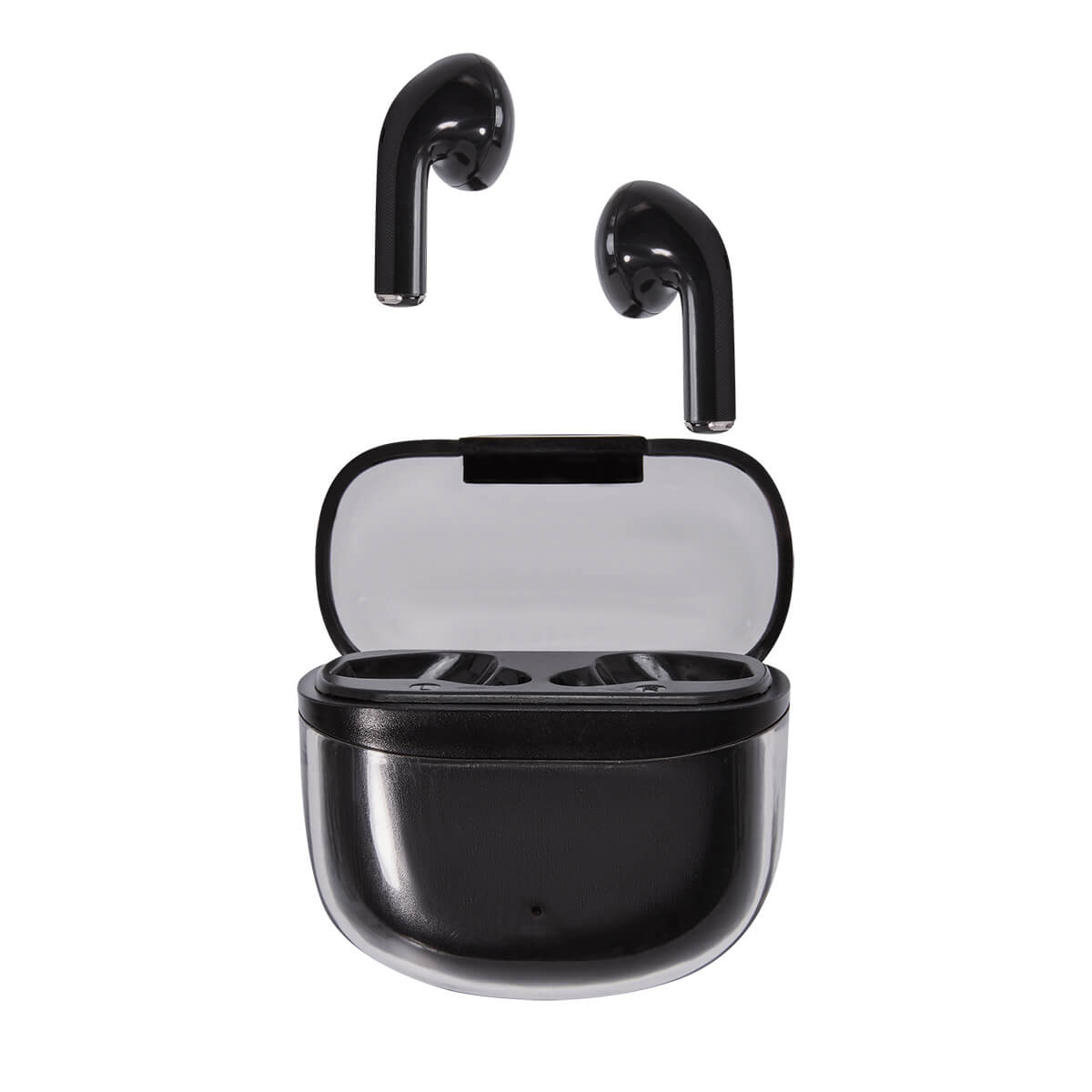 Audífonos bluetooth con base recargable. Controles integrados touch para llamadas, volumen y reproducción de audio. Reproducción de música 2 a 3 hrs aproximadamente. Rango de conexión de 10 metros. Incluye estuche de carga y cable cargador USB. – AUD 039