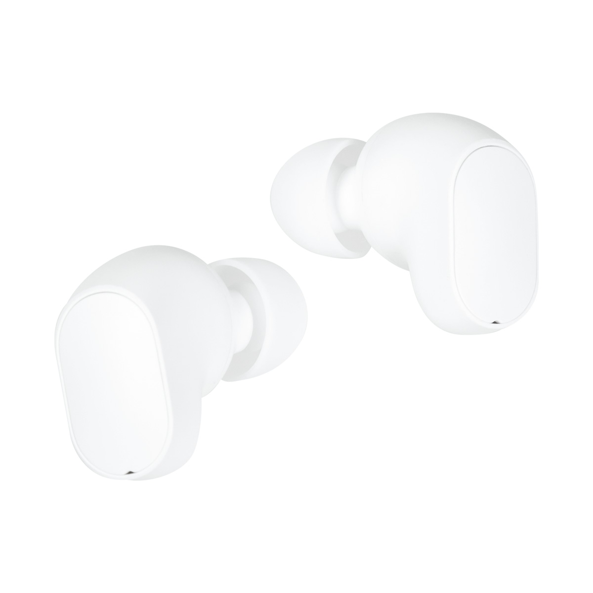 Audífonos bluetooth con base recargable. Controles integrados touch para llamadas, volumen y reproducción de audio. Reproducción de música de 4 hrs aproximadamente. Rango de conexión de 10 metros. Batería de 30 mAh en los auriculares y 300 mAh en el estuche de carga. Incluye cable cargador USB, estuche de carga con conexión tipo C y caja individual. – AUD 050