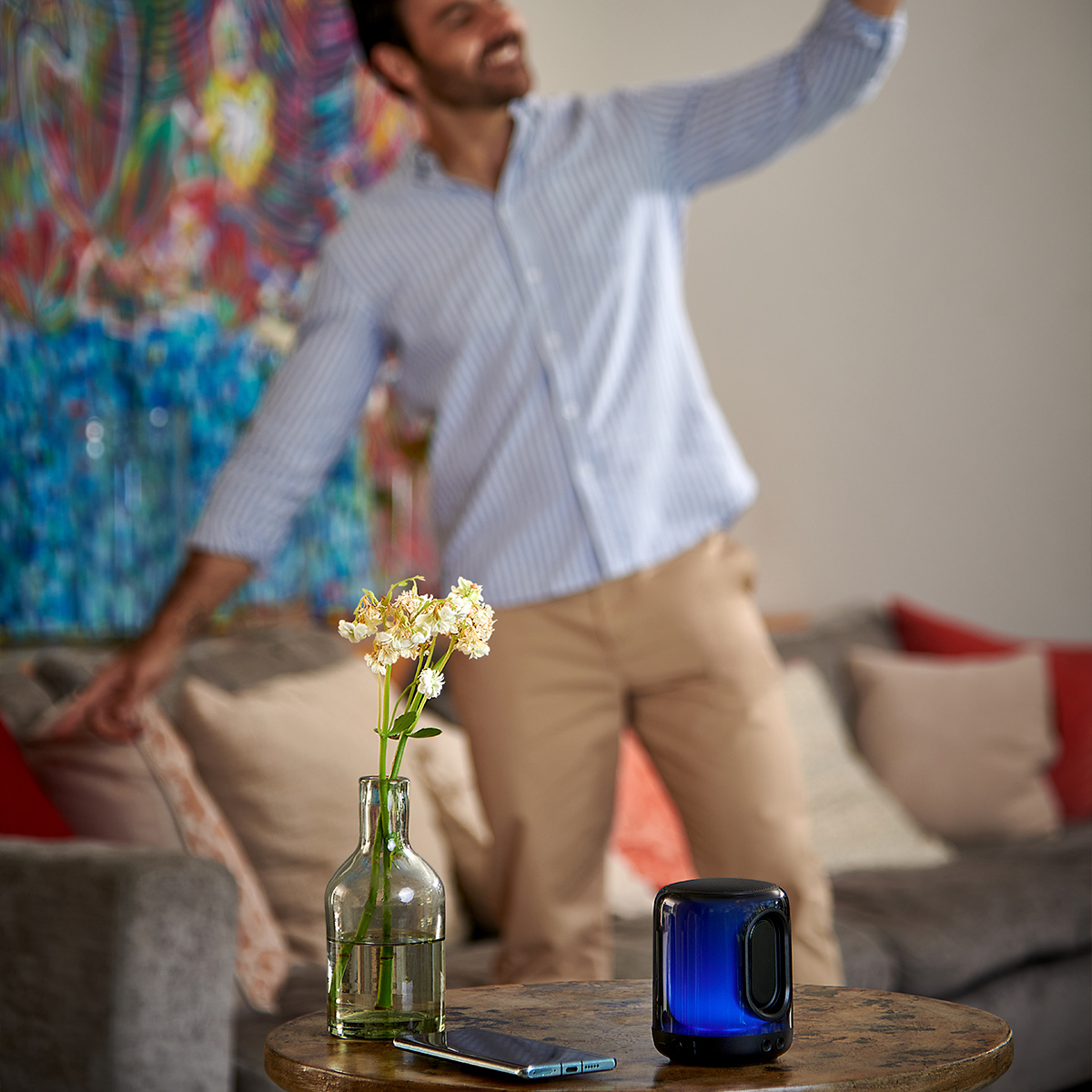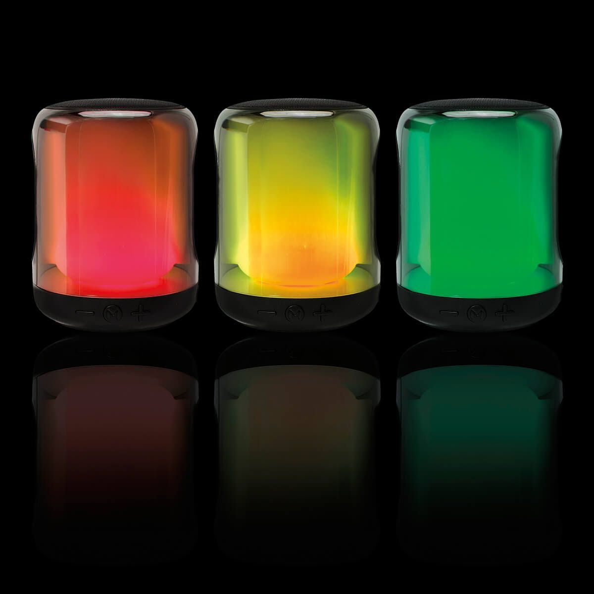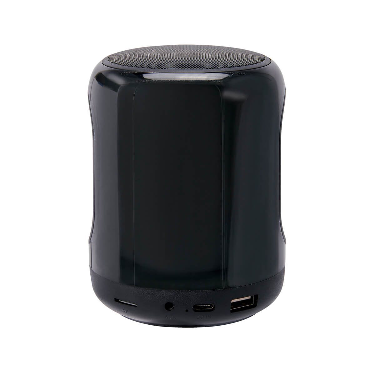 Bocina bluetooth recargable con luz RGB ajustable a 10 efectos diferentes. Reproducción de música 4 hrs aproximadamente. Rango de conexión 10 metros. Cuenta con puerto para tarjeta TF, puerto USB, puerto auxiliar 3.5 mm y puerto tipo C. Radio FM. Incluye cable cargador USB. – Z 017