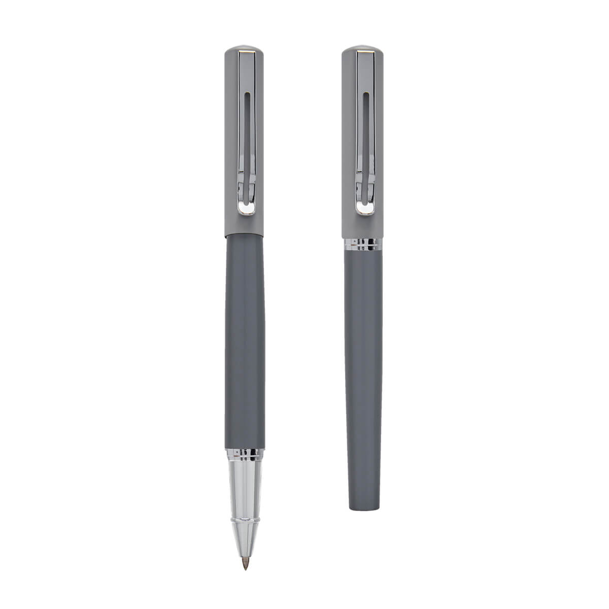 Bolígrafo metálico con tapón. Color en dos tonos de gris. Incluye estuche. – RQ 1070