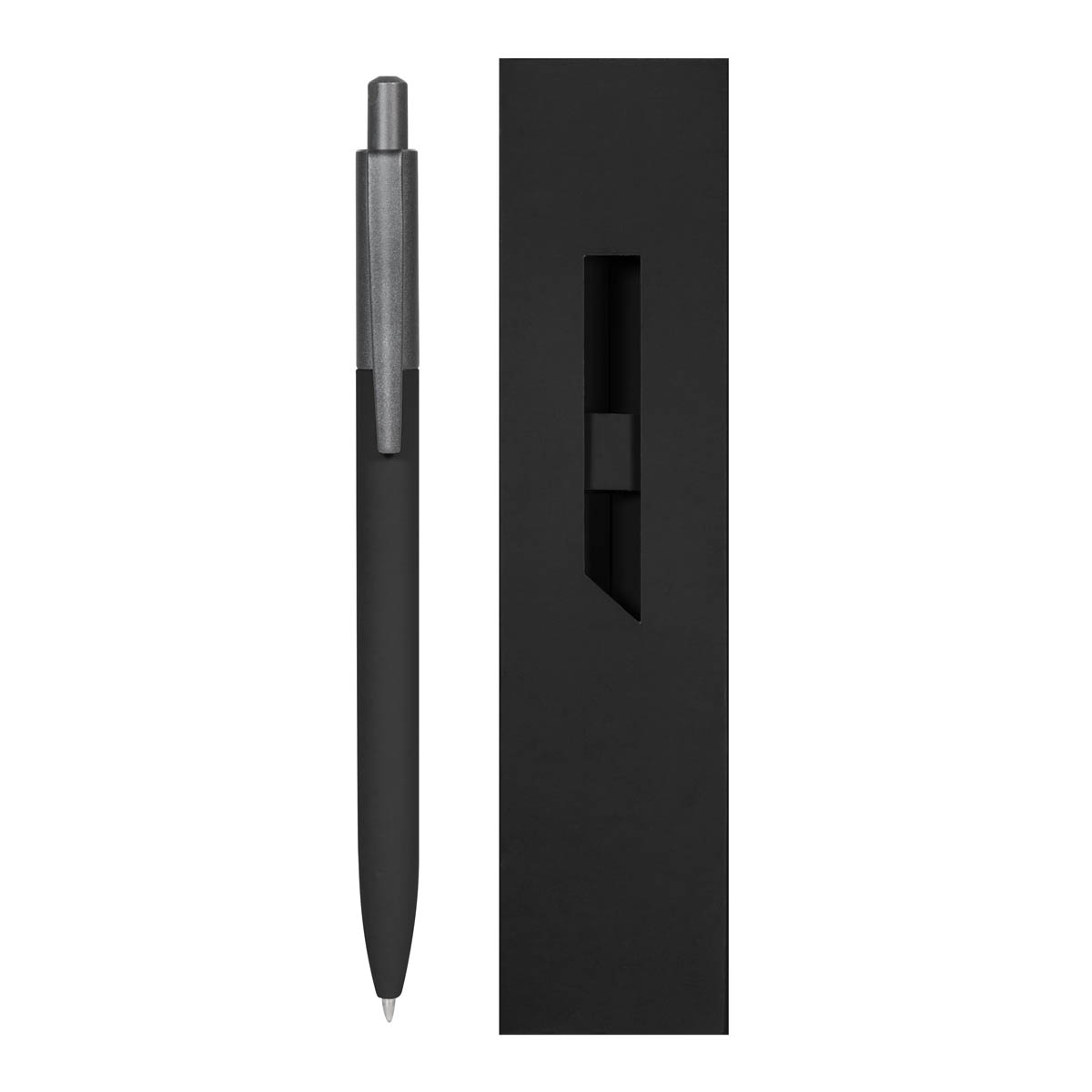 Bolígrafo metálico con terminado mate. Mecanismo pulsador. Incluye estuche de color a tono con el bolígrafo. – RQ 1140