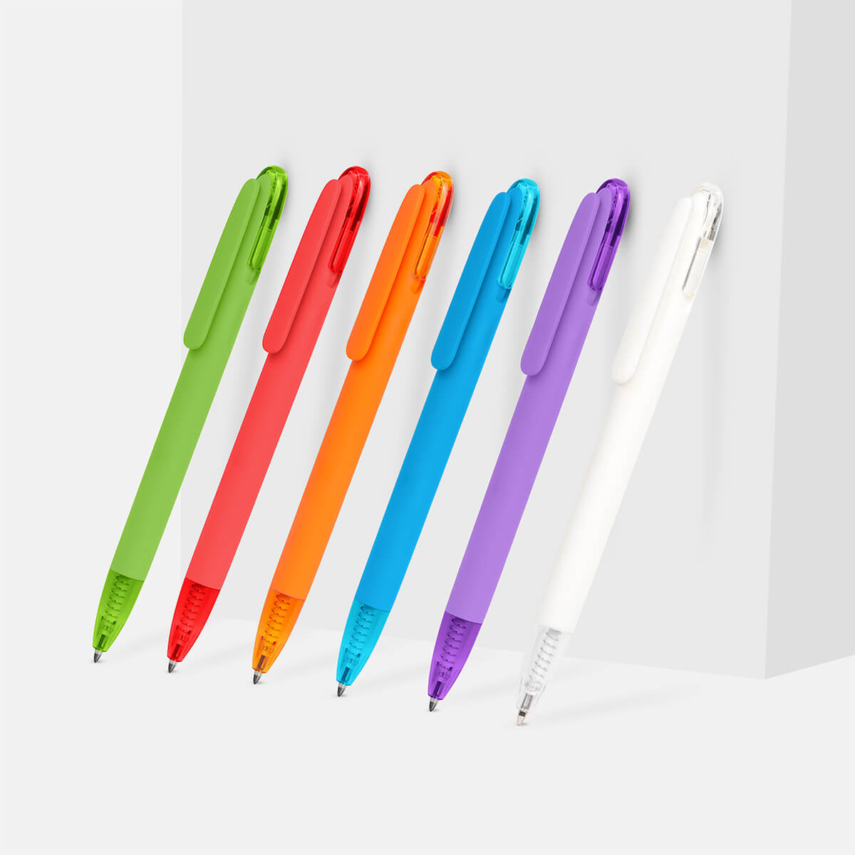 Bolígrafo de plástico con terminado rubber. Su contraste de material solido y translucido aportan un toque único a su diseño. Mecanismo pulsador. – SH 4001