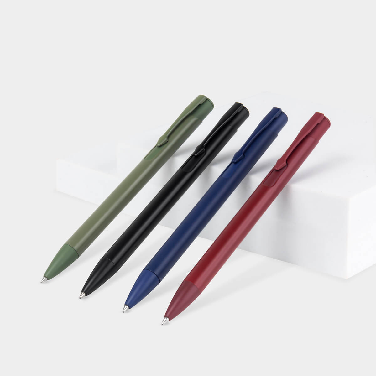 Bolígrafo metálico con acabado mate y clip a color. Mecanismo pulsador. – RQ 1161