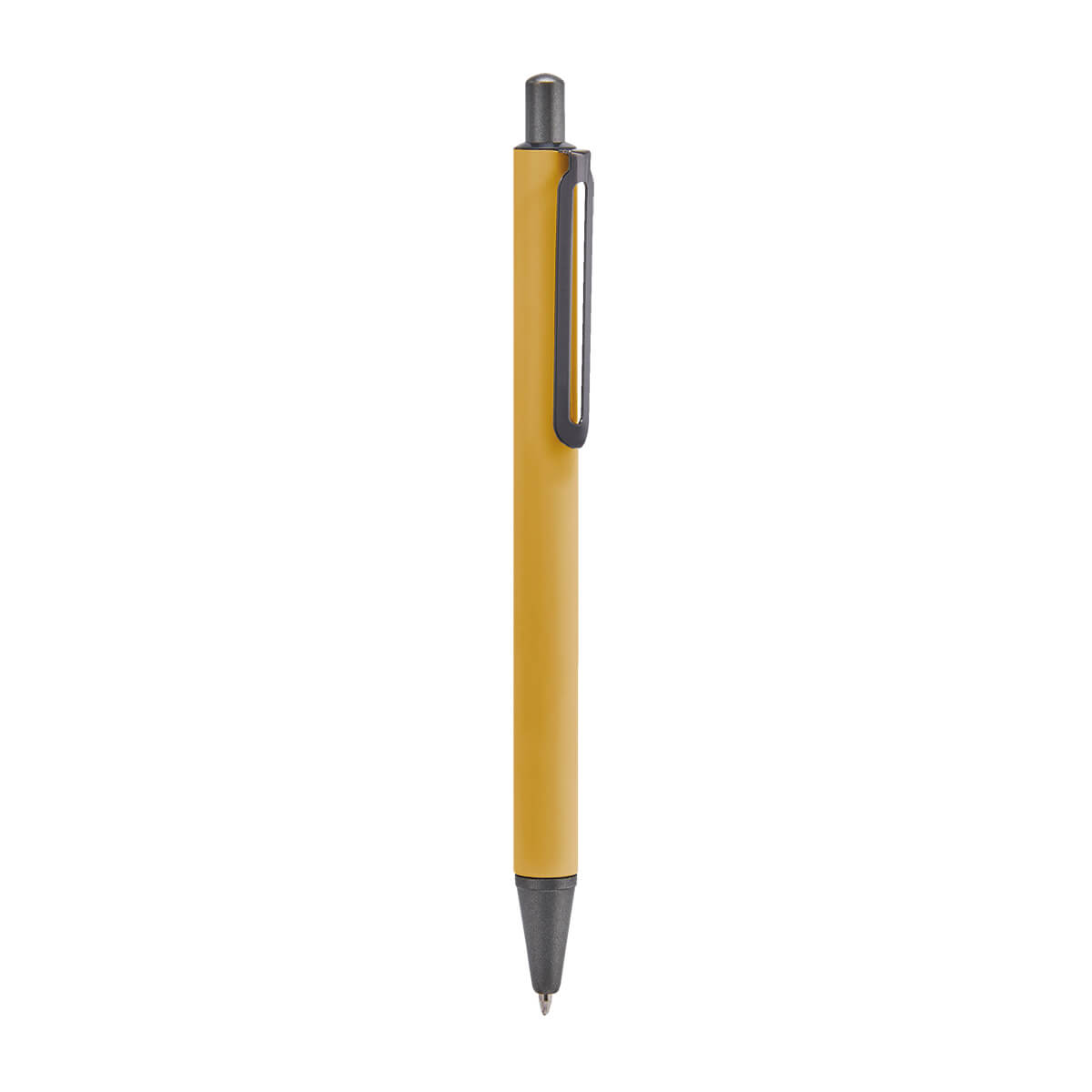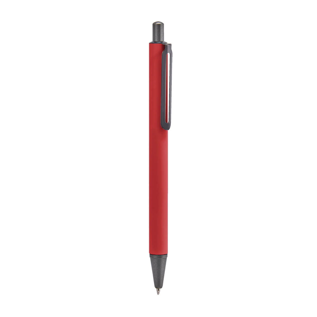 Bolígrafo metálico con terminado mate y clip suajado. Mecanismo pulsador. Incluye funda. – RQ 1030
