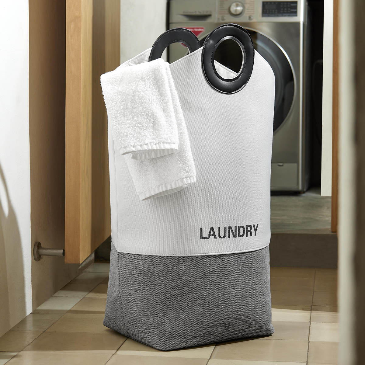 Cesto que combina materiales lisos y texturizados aportando un toque moderno y elegante. Sus asas de curpiel no solo ofrecen un agarre cómodo, sino que también realzan su apariencia sofisticada. Ideal para guardar ropa o almacenar textiles. Este cesto no solo es funcional, sino que también añade un elemento decorativo a cualquier habitación. – KTC 620