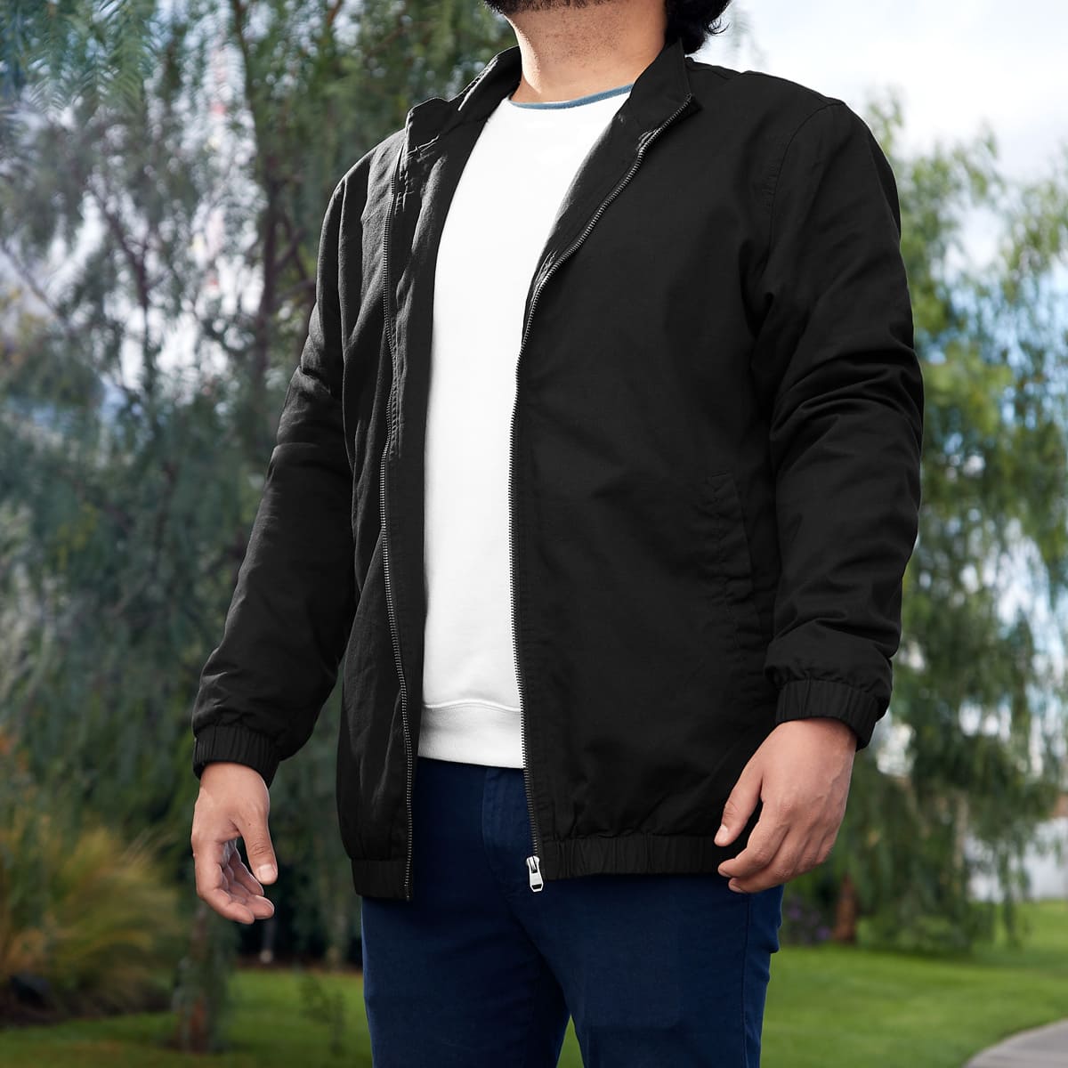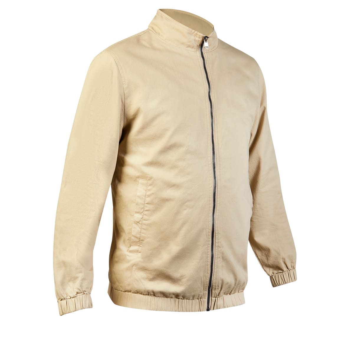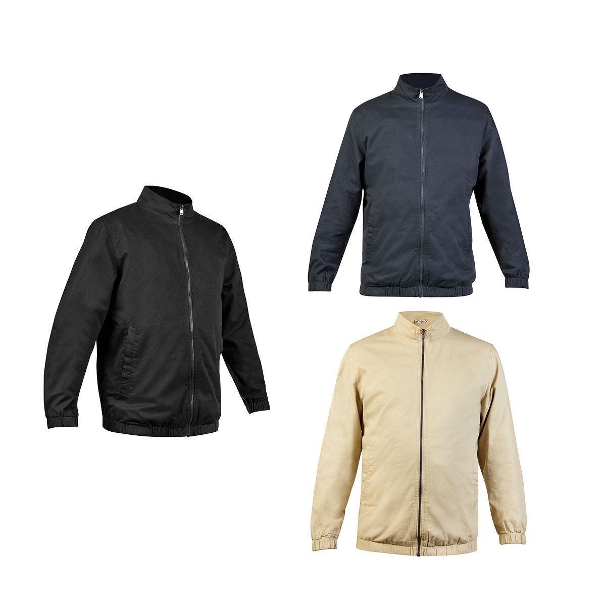 Chamarra casual. Cuenta con cierre metálico y elástico para ajuste en muñecas y cintura. Fabricada con material tipo gabardina, exterior 100% algodón y forro 95% poliéster – 5% algodón. Incluye 2 bolsillos exteriores con botón metálico y 1 bolsillo invisible en la parte interna. – CHM 018