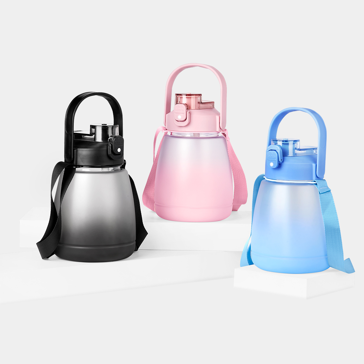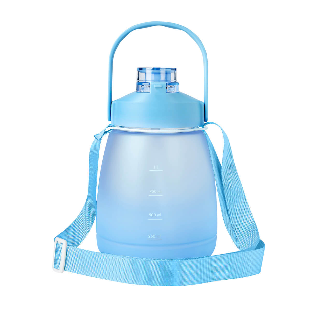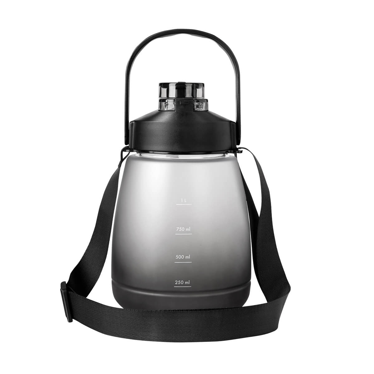 Tapa de plástico con cierre de rosca y boquilla, sobretapa push con botón de seguridad y asa plegable. Incluye asa de poliéster para transportarlo fácilmente. Cuerpo con terminado rubber que lo hace suave al tacto. Incluye indicador de mililitros para motivar y controlar tus hábitos de hidratación. Incluye popote y caja individual. – ANF 079
