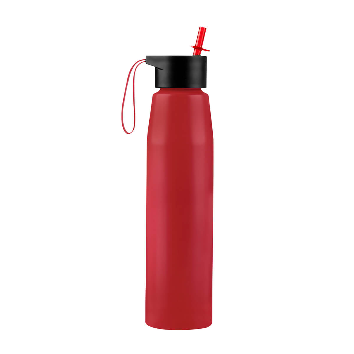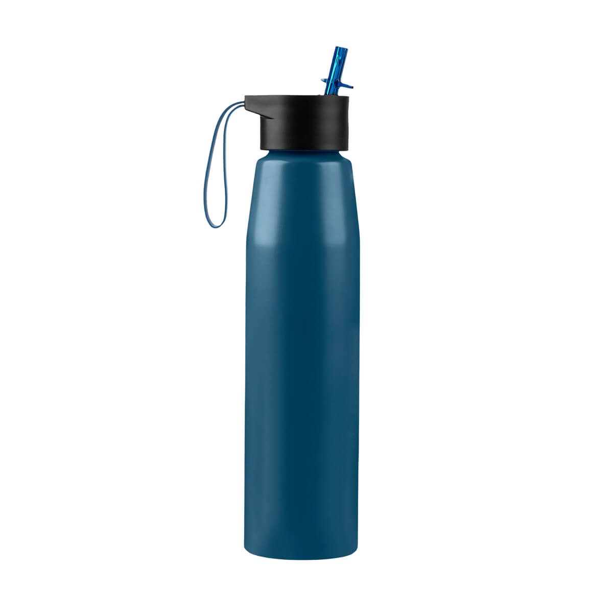 Cilindro metálico de una pared. Incluye tapa de plástico con sistema de rosca para un cierre hermético y seguro, cuenta con una boquilla plegable para beber sin riesgo de derrames, incluso estando en movimiento. Incluye popote de plástico. La tapa incluye también un asa de silicón, que permite transportarlo fácilmente a cualquier parte. Capacidad de 25 Oz. Incluye caja individual. – TMPS 273