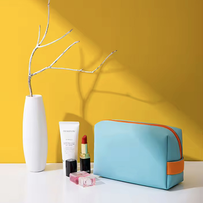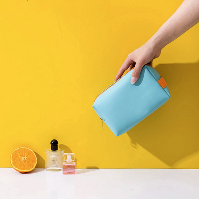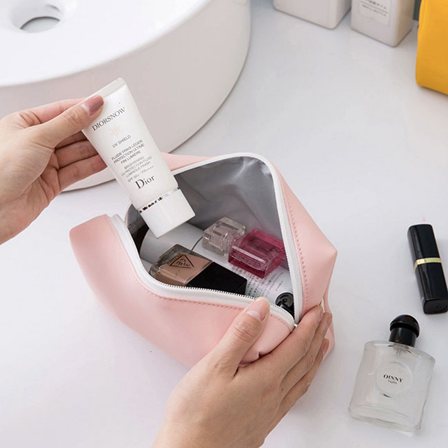 • Cosmetiquera practica con cierre en zipper y correa en el lomo para sujetar.