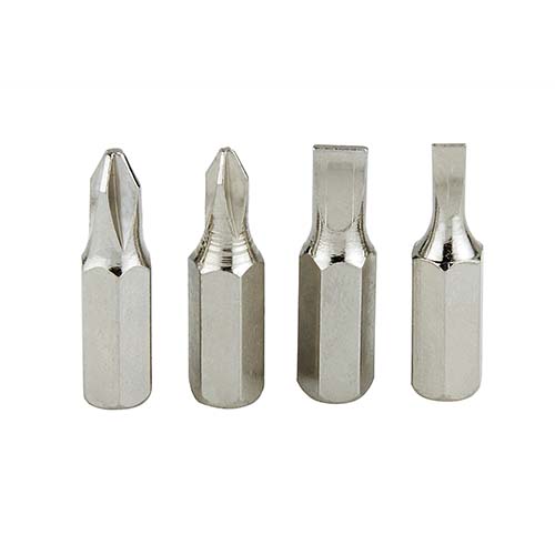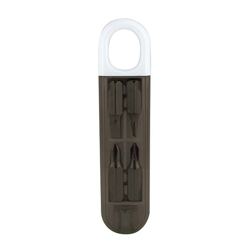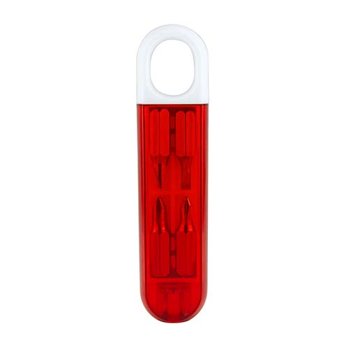 Contiene desarmador con 2 puntas de cruz y 2 puntas planas diferentes e intercambiables. – HER 031