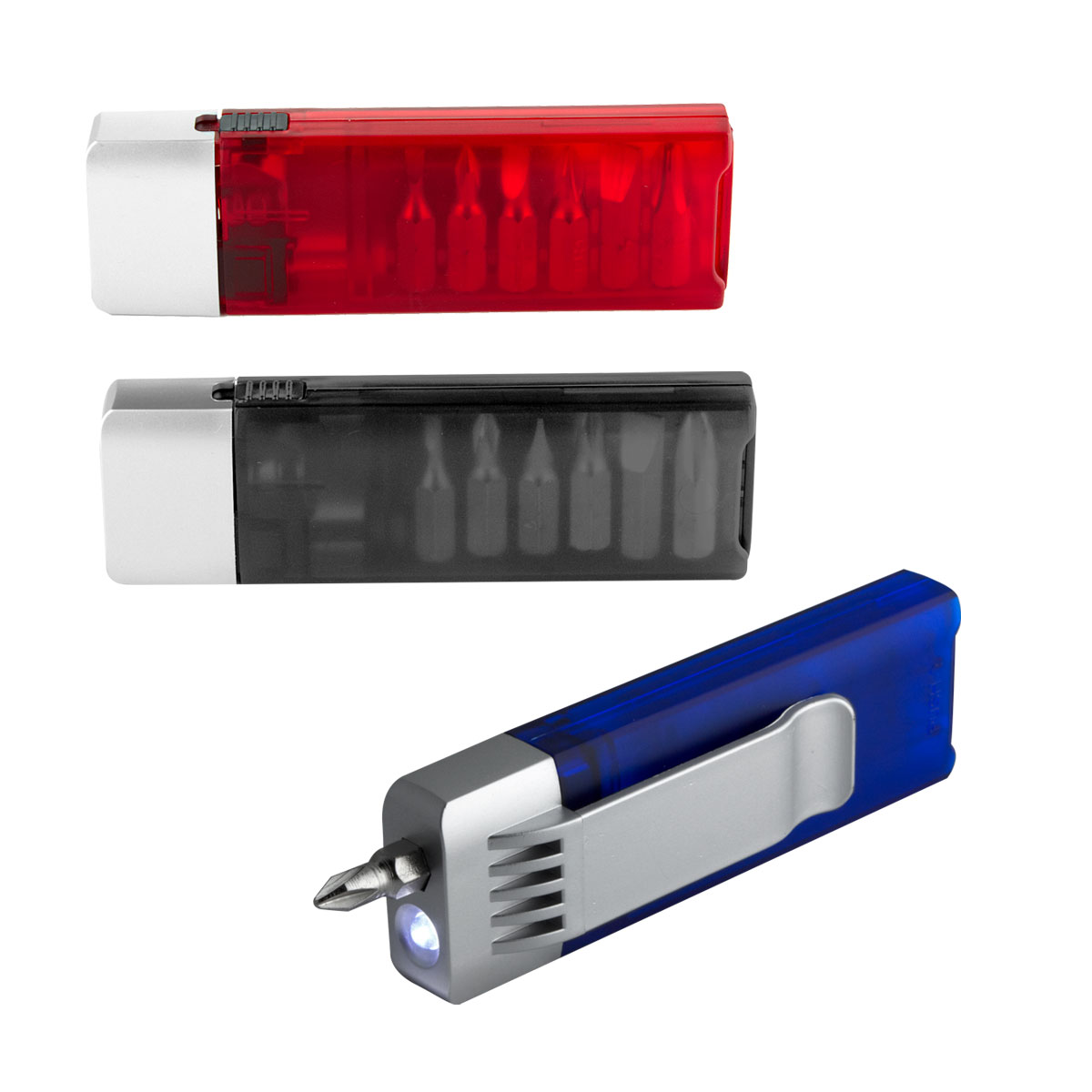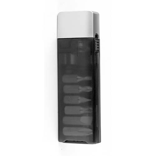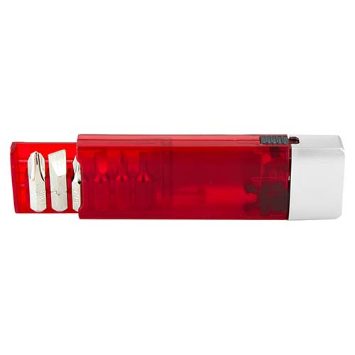Contiene desarmador con 6 puntas diferentes e intercambiables, lámpara y clip. Incluye 4 baterías de botón. – HER 07