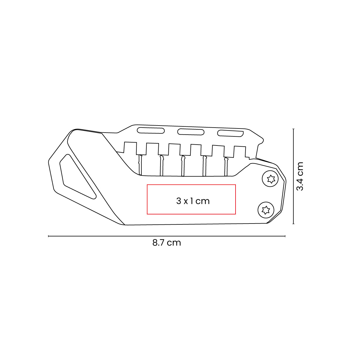3.4 x 8.7 x 1.7 cm