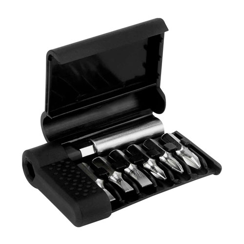 Contiene desarmador con 3 puntas planas, 3 puntas de cruz, diferentes e intercambiables. Incluye extensión. Este producto por ser últimas piezas puede presentar alguna variación, no se aceptan devoluciones. – HER 052