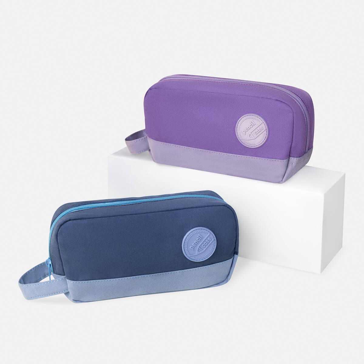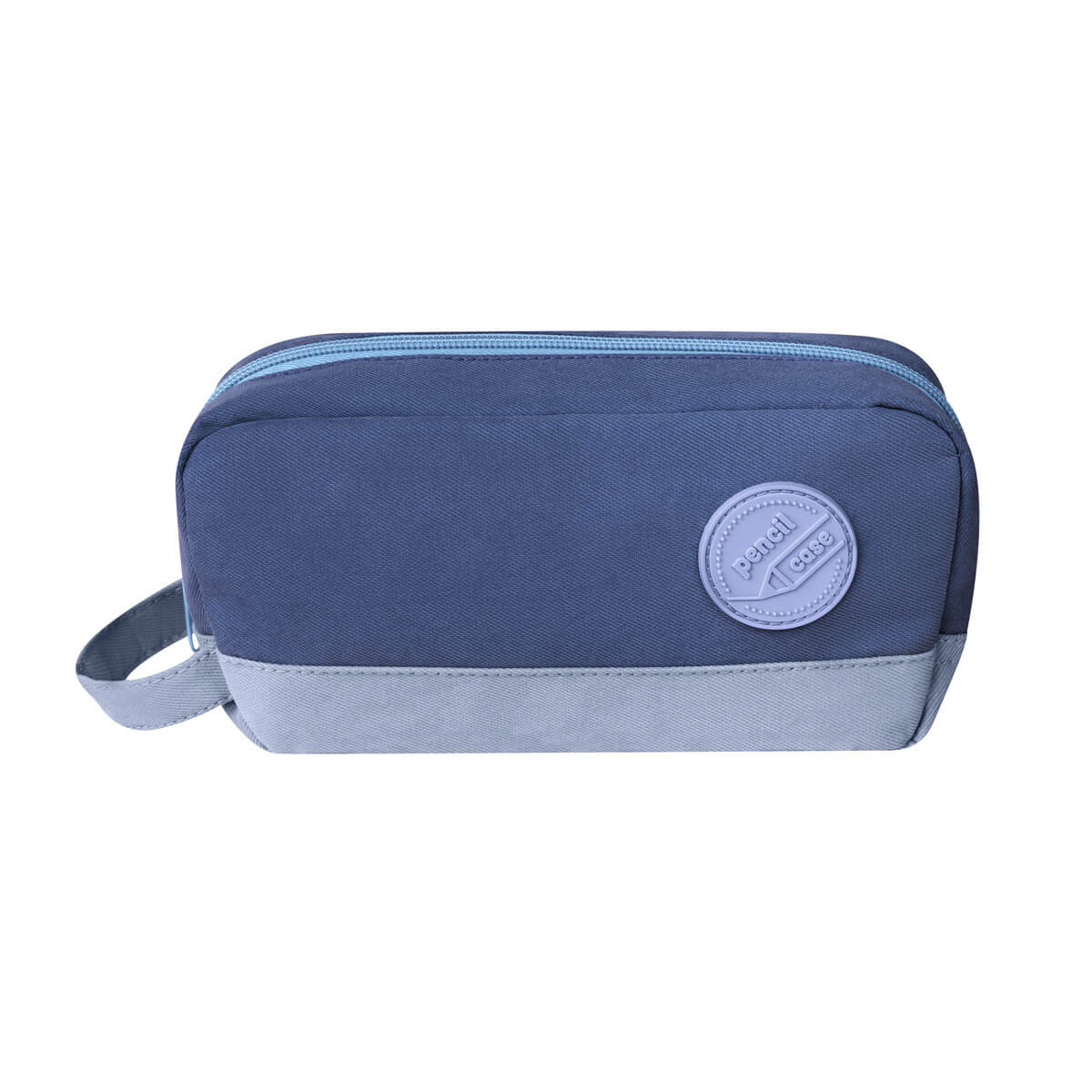 Estuche escolar bitono con asa para sujetar fácilmente. Incluye cierre en el compartimento principal, amplio espacio para artículos escolares y un parche decorativo de silicón. – INF 630