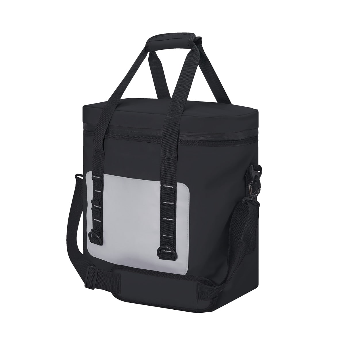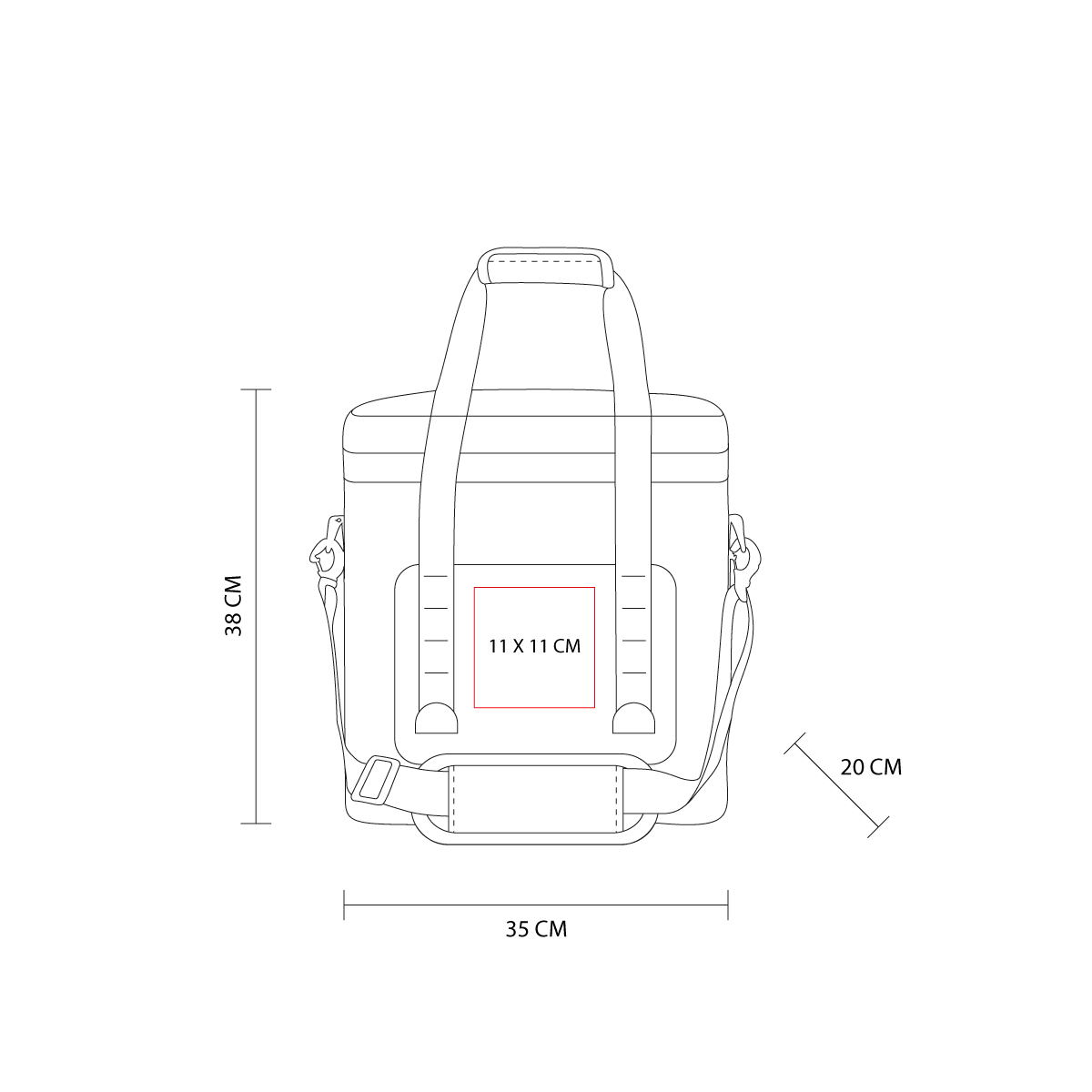 Interior y exterior plastificado impermeable. Bolsa principal con cierre, bolsillo frontal. Incluye asa de mano con velcro y correa larga ajustable con soporte acojinado. Capacidad para 36 latas. – SIN 508