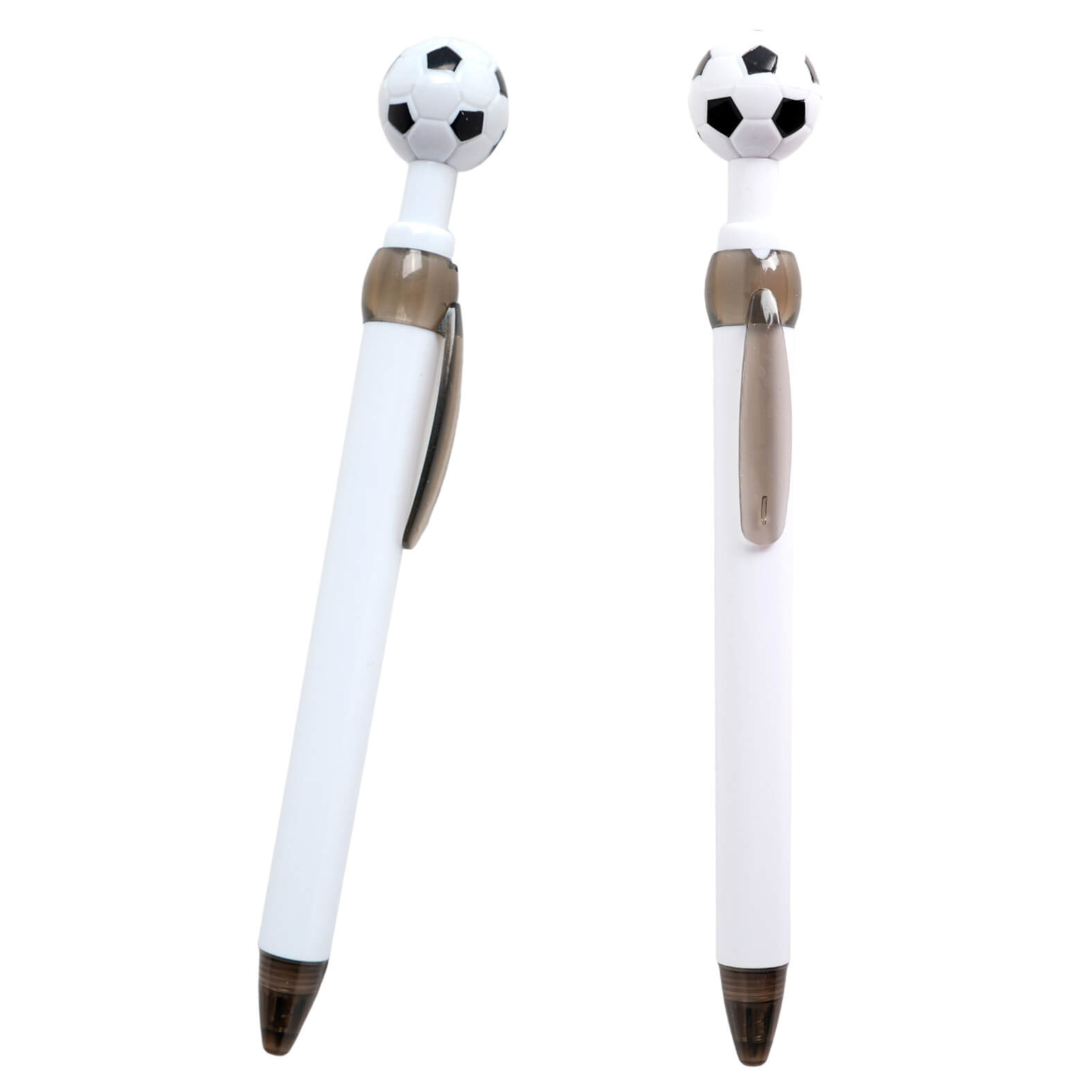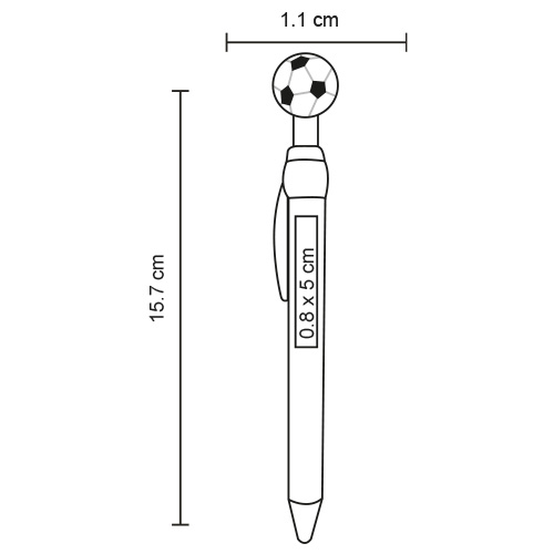 Bolígrafo plástico con clip y figura de balón en la parte superior, que sirve como botón. – 4P-BP 25117