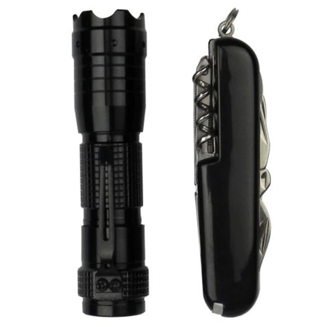 • Incluye bolsa ajustable al cinto con compartimentos, navaja multifuncional y linterna.