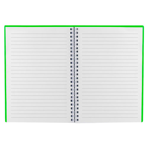 Libreta con 80 hojas de raya. Incluye notas adheribles de colores, espiral metálico doble y elástico para cerrar. – HL 012