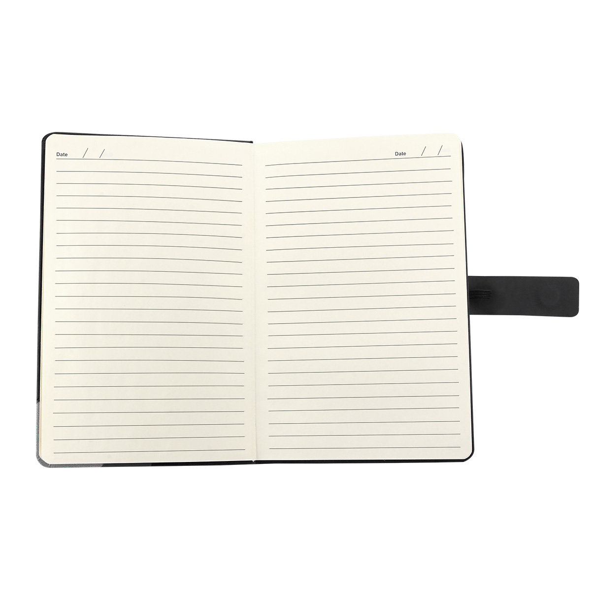 Libreta con 80 hojas de raya. Incluye elástico para bolígrafo, broche imantado para cerrar y placa para grabado. – HL 2150