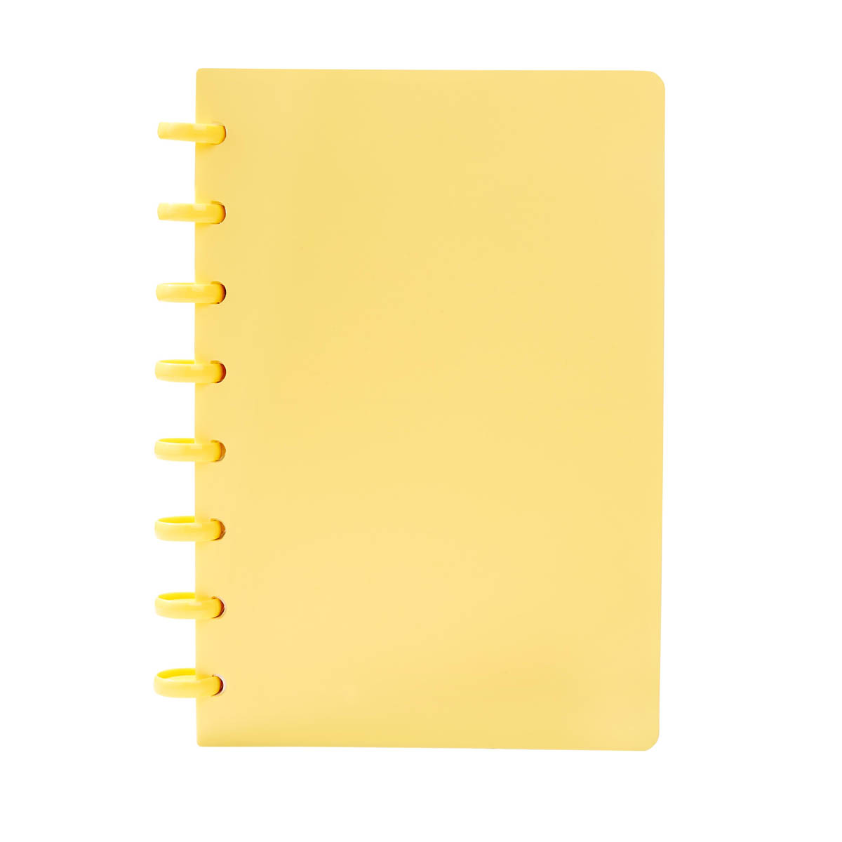 Libreta con 80 hojas a rayas. Cubierta de plástico. Incluye 8 aros de plástico que funcionan como espiral y permite la incorporación de hojas removibles, lo que facilita la reorganización de tus apuntes cuantas veces lo desees. Ideal para notas, bocetos o planificación, esta libreta combina funcionalidad y un diseño innovador. – HL 9056