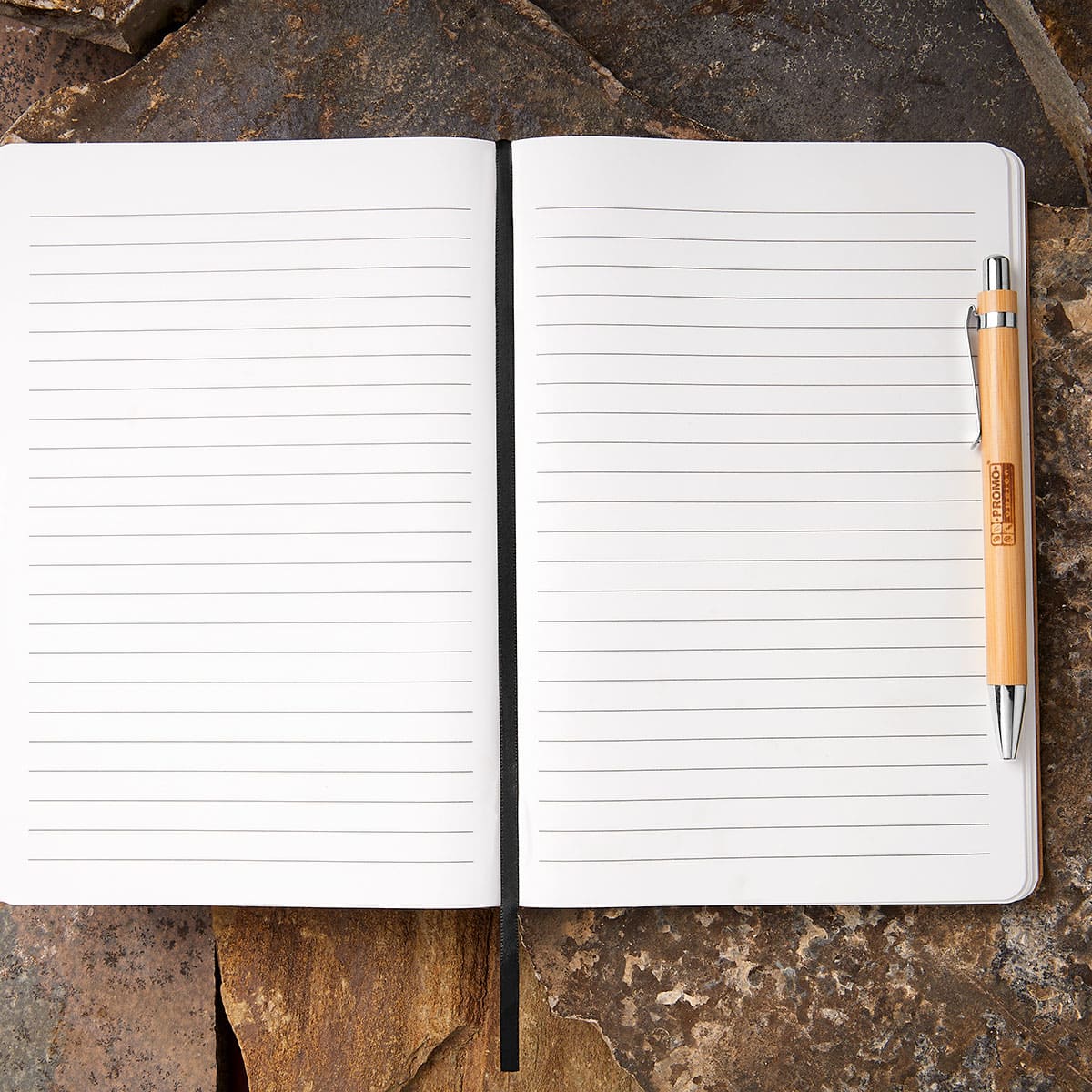 Libreta con 80 hojas de raya. Las hojas interiores están fabricadas a base de piedra natural. Este papel es resistente al agua, al desgarro y a las manchas. Incluye elástico y listón separador. Bolígrafo no incluido. – HL 9088