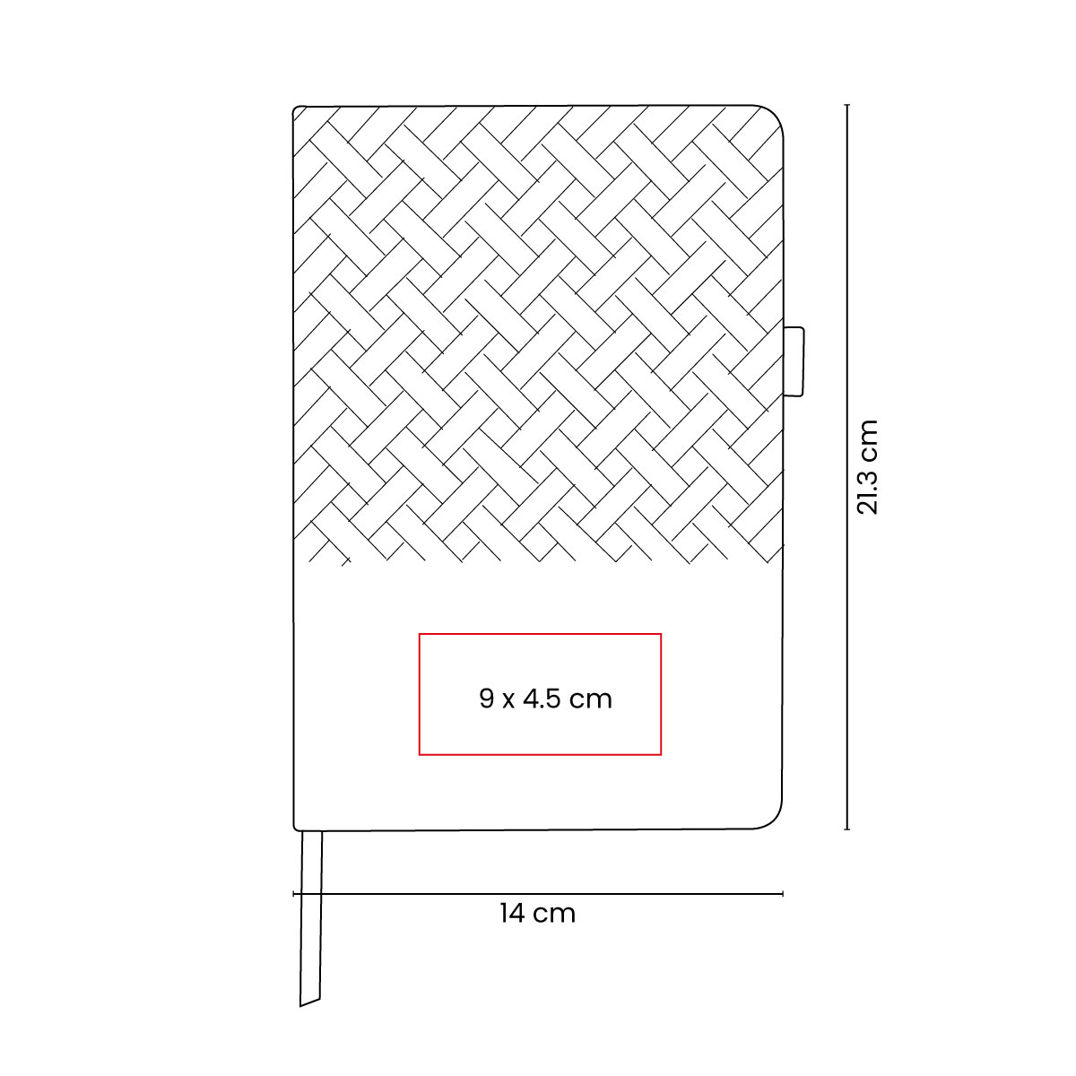 Libreta con 80 hojas a raya. Cubierta rígida con dos tipos de textura: una con diseño en termograbado y otra lisa. Incluye elástico para bolígrafo y separador de hojas. Bolígrafo no incluido. – HL 9046