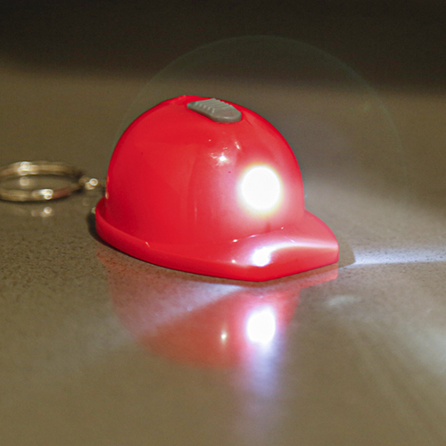 Llavero casco con destapador con lámpara de 1 LED. Incluye 3 baterías de botón. – DPO 031