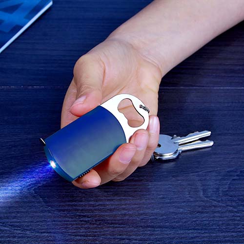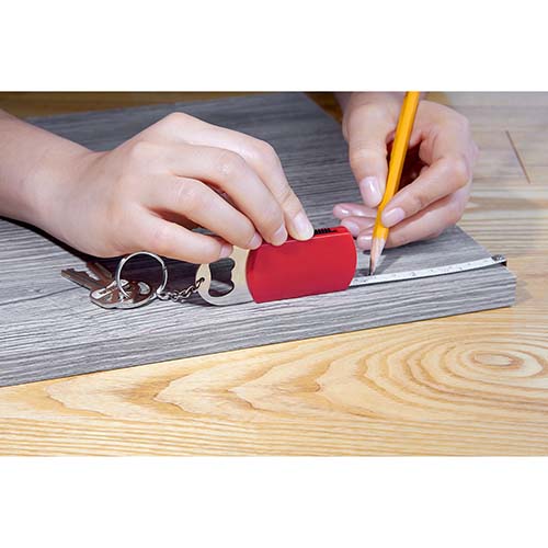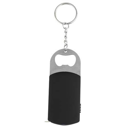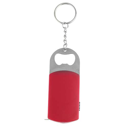 Llavero destapador con lámpara de 1 LED y flexómetro de cinta metálica de 1 m. – DPO 030