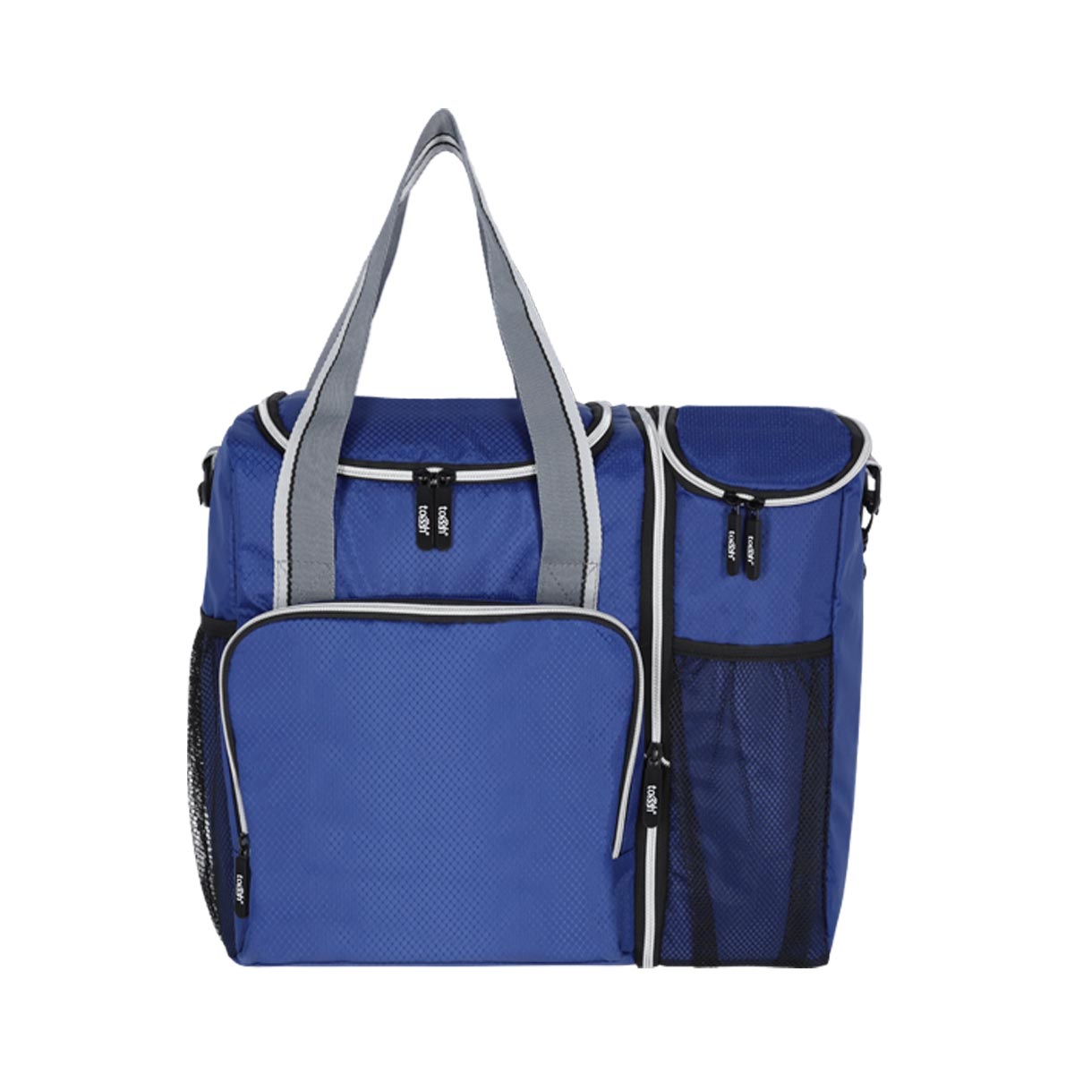 Doble compartimiento con cierre. Cierre intermedio que permite separar en dos piezas y usarlas de forma individual. Interior plastificado. Bolsillo frontal con cierre. Malla frontal y lateral. Correa ajustable. Identificador en la parte trasera. Este producto por ser últimas piezas puede presentar alguna variación, no se aceptan devoluciones. – SIN 498