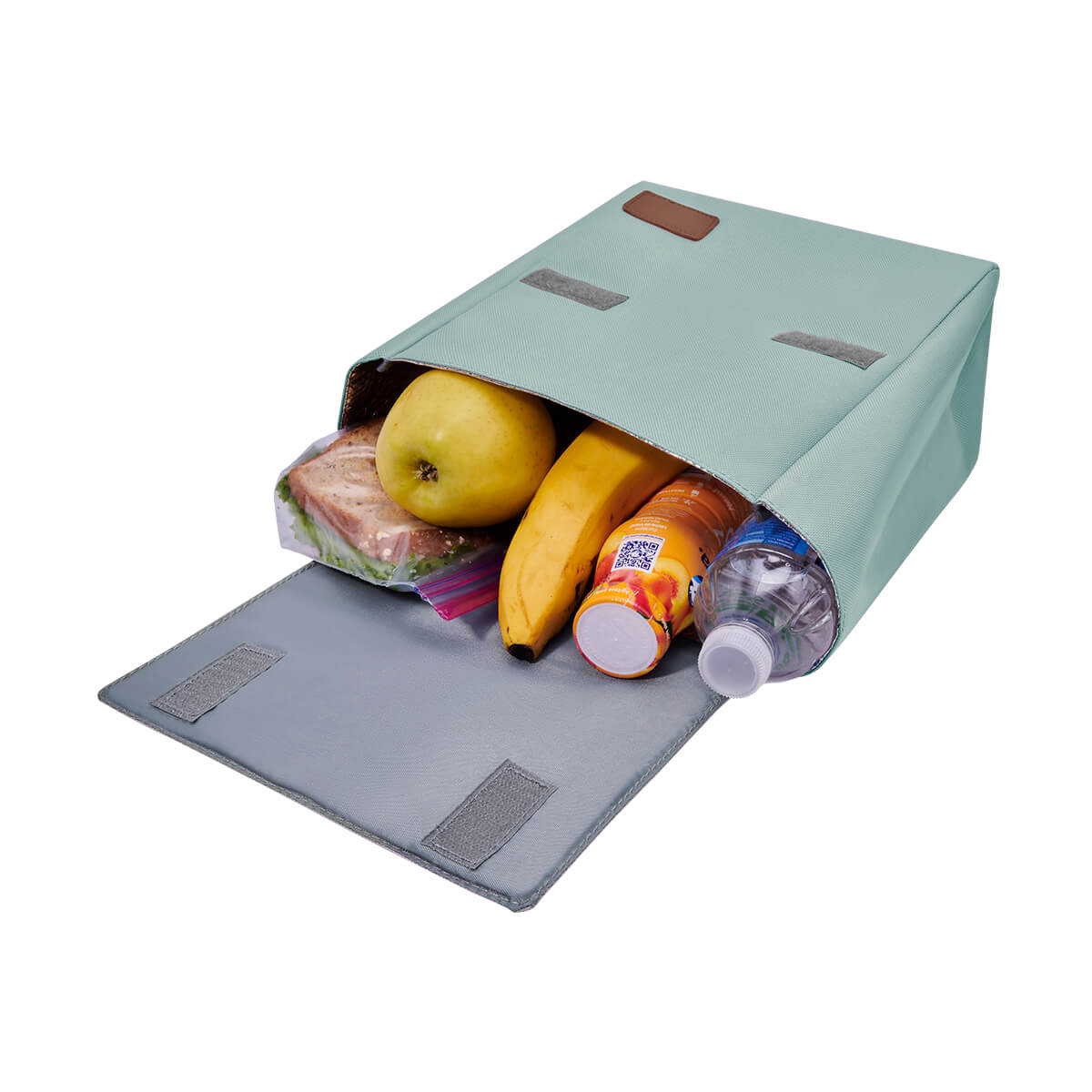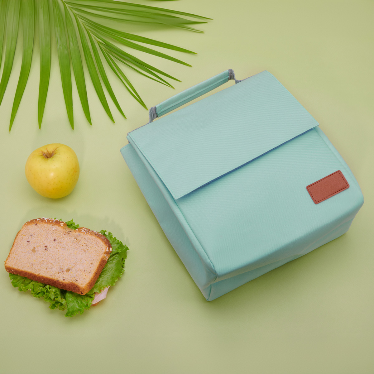 Lonchera con interior metalizado. Bolsa principal estilo solapa con cerrado de velcro. Al frente parche de curpiel. Para mayor comodidad cuenta con asa de transporte superior. Empaca tus alimentos y bebidas para el trabajo, escuela, viaje o picnic. Capacidad para 6 latas. – SIN 511
