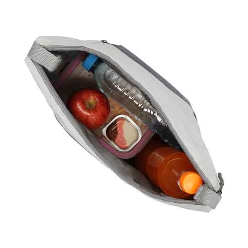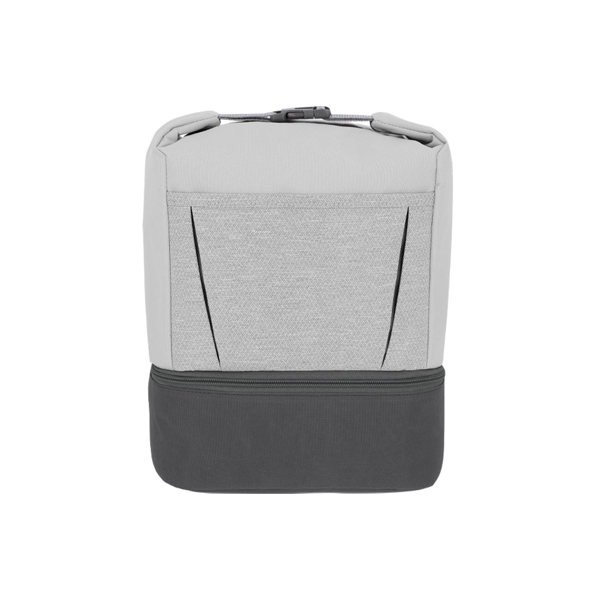 Interior plastificado. Doble compartimento con cierre. Bolsillo frontal. Agarradera con broche de plástico. Capacidad para 9 latas. – SIN 495