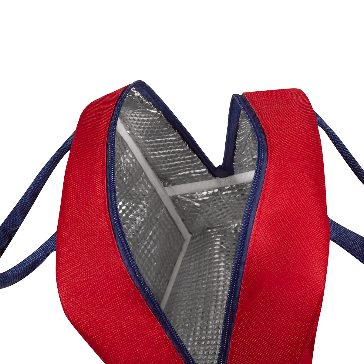 Lonchera con interior metalizado, que le permite mantener alimentos frescos y protegidos, diseño compacto y ligero. Cuenta con una bolsa frontal de rápido acceso, que facilita el almacenamiento de utensilios pequeños o snacks adicionales. Cuenta con asas reforzadas, para sostenerla con mayor comodidad. Capacidad para 6 latas. – SIN 937