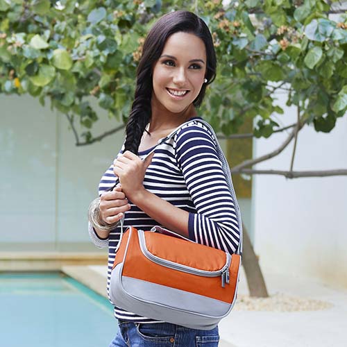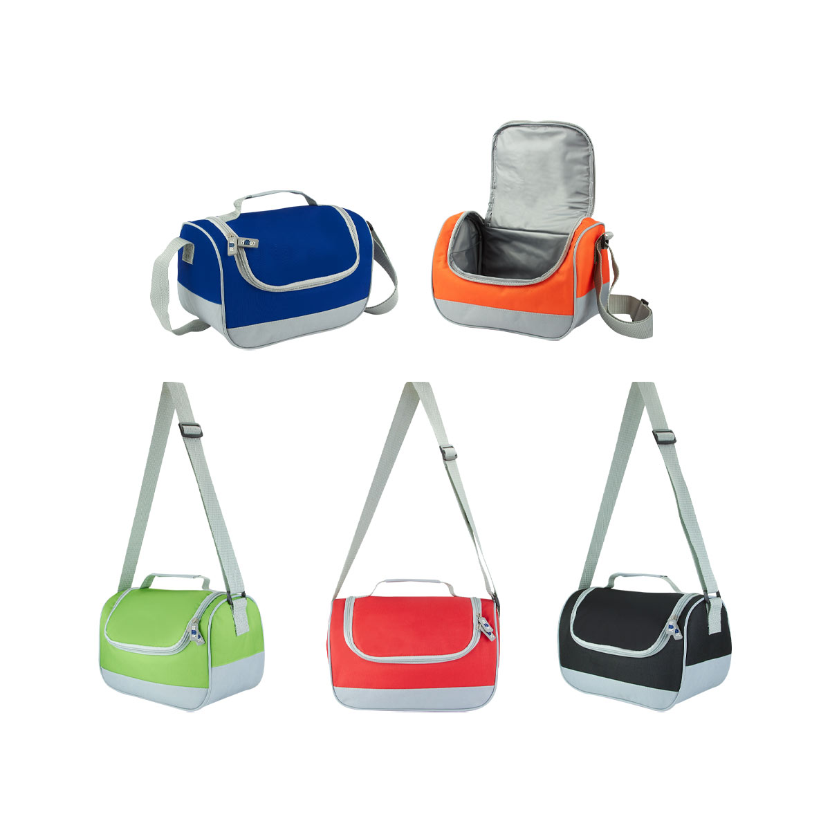Interior plastificado. Bolsa principal con cierre. Asa de agarre superior y correa ajustable. Capacidad para 6 latas. – SIN 123