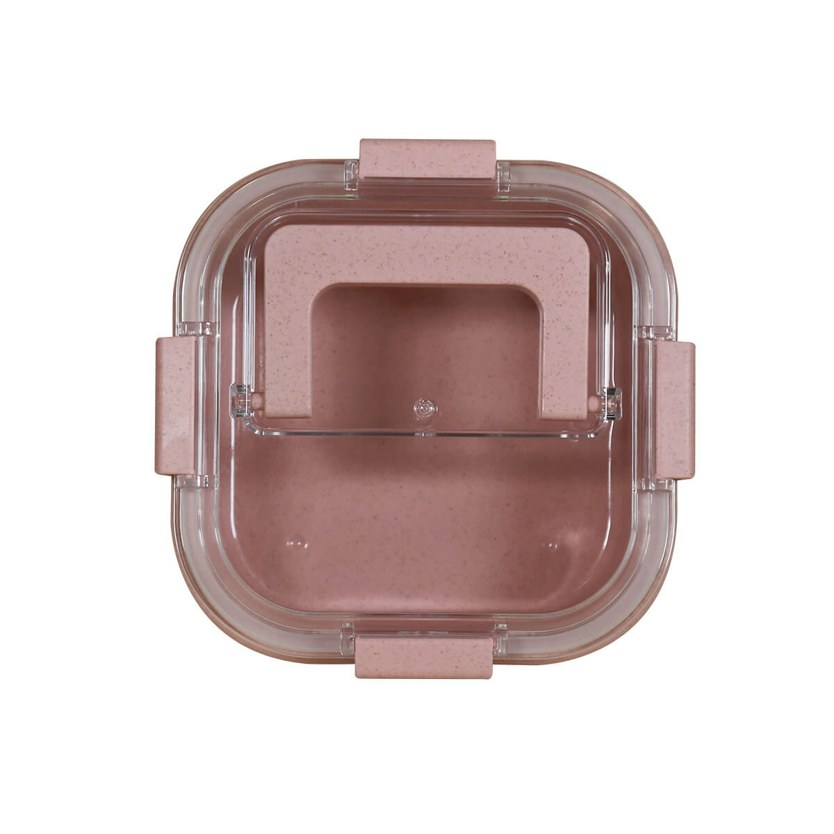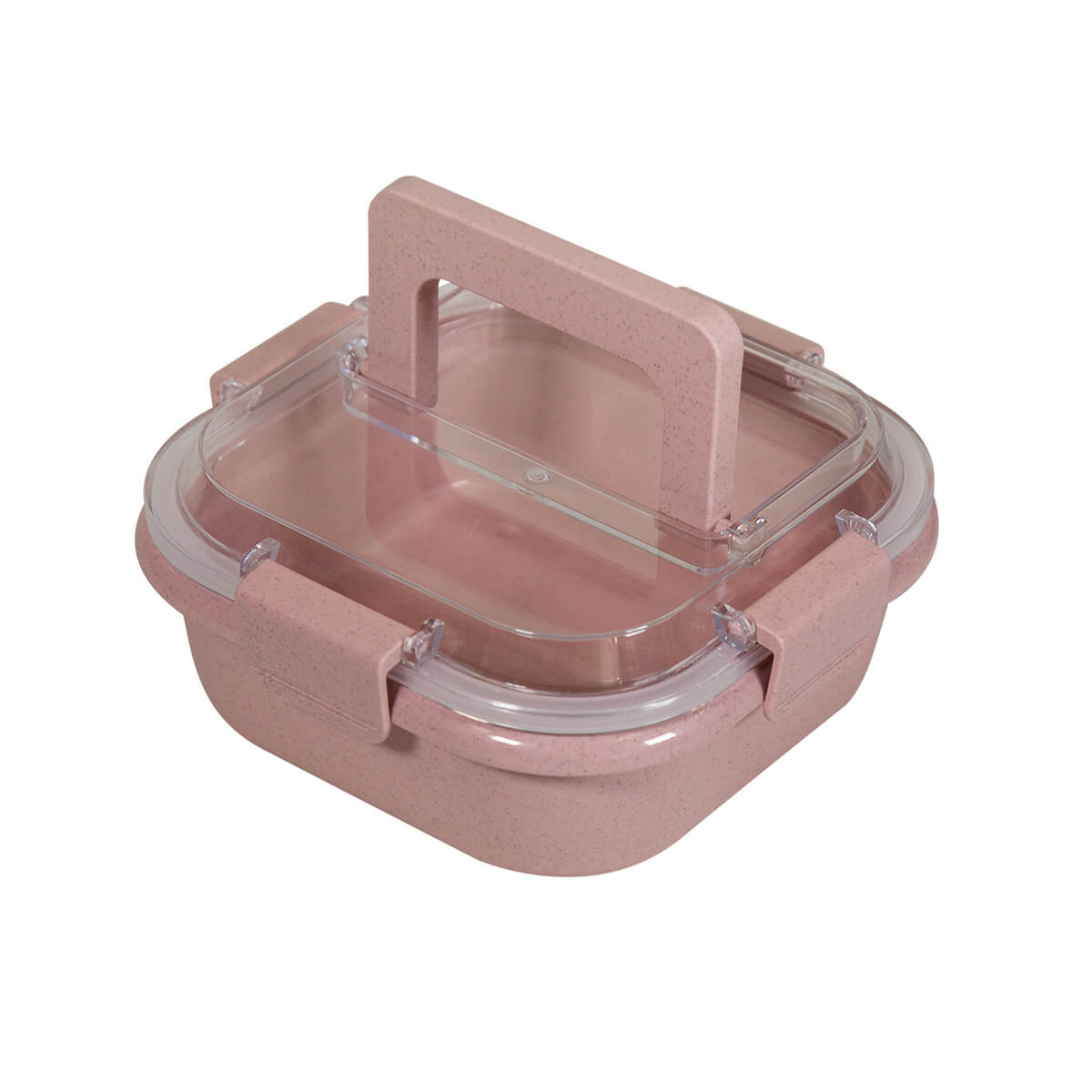 Lonchera de plástico y fibra de trigo que combina versatilidad y sostenibilidad. Su tapa cierra de manera segura con cuatro pestañas para prevenir derrames. El asa plegable facilita su transporte y también ahorra espacio cuando no está en uso. Por su forma cuadrada, esta lonchera es perfecta para almacenar sandwiches o pequeños refrigerios, proporcionando una opción práctica y ecológica para llevar tus comidas a donde quieras. Apto para el uso en microondas y lavavajillas. – KTC 608