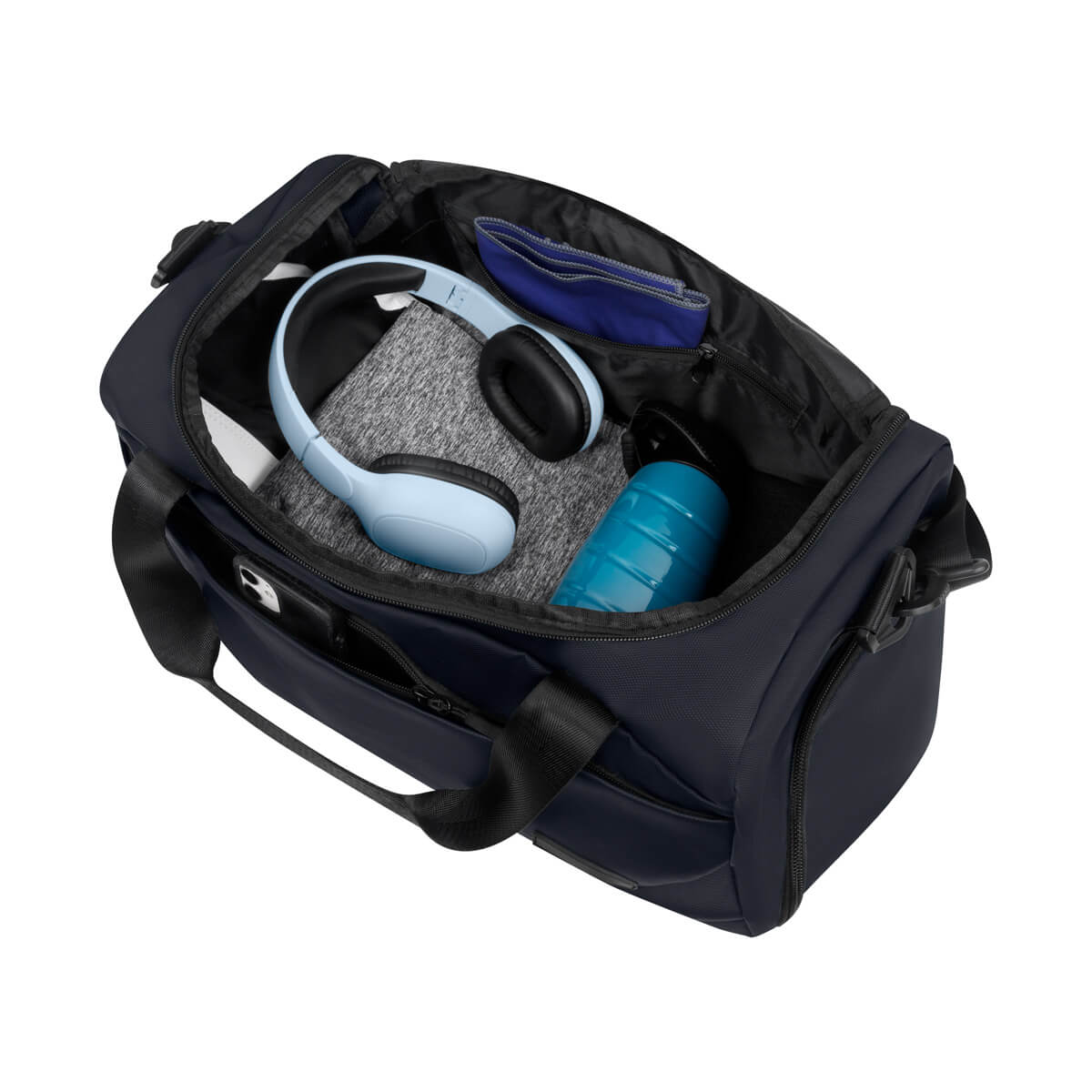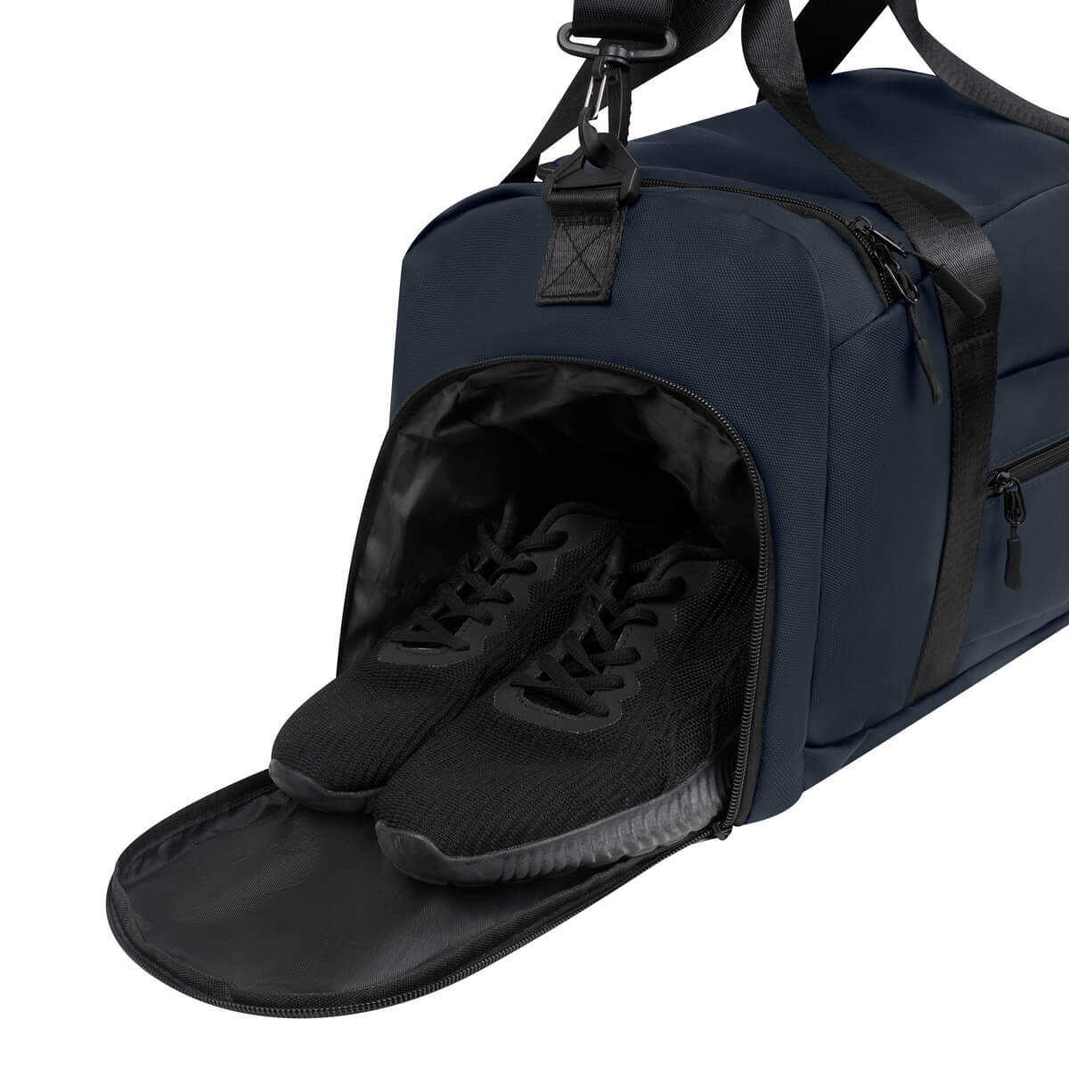Maleta que ofrece gran versatilidad de uso. Cuenta con un amplio compartimento principal y un bolsillo frontal con cierre. El bolsillo lateral con malla de acceso rápido. Tiene una práctica zapatera resistente a la humedad, para mantener el calzado separado y protegido. Asa ajustable y banda trolley. Por su tamaño, es ideal para llevarlo en un portaequipajes o en el maletero del automóvil. – SIN 955