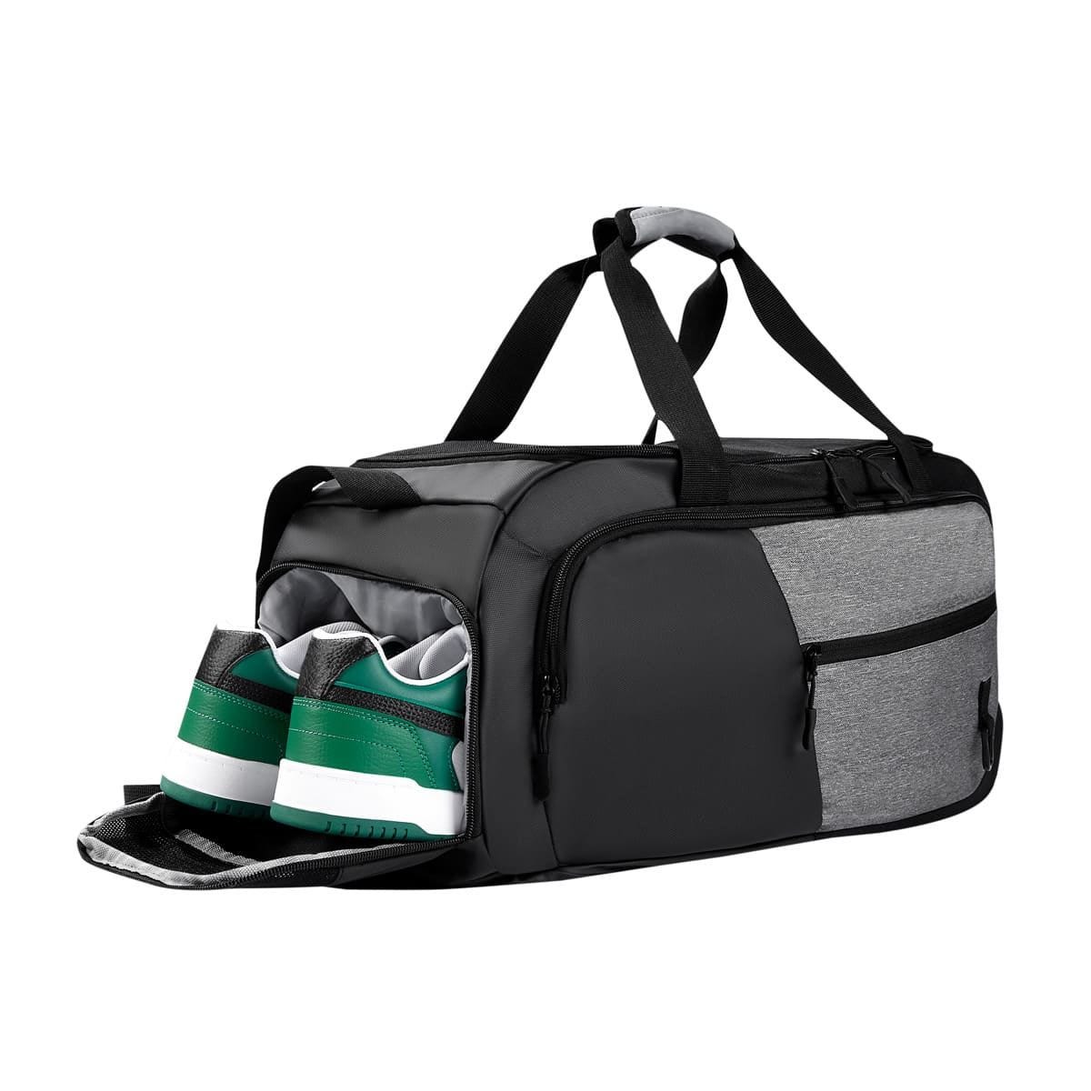 Maleta deportiva con bolsa principal y frontal con cierre que combina funcionalidad y estilo en un solo producto. Incluye accesorio para colgar llaves, compartimento para separar tu calzado, bolsillo lateral de malla, asas de mano y correa para hombro ajustable. – SIN 884