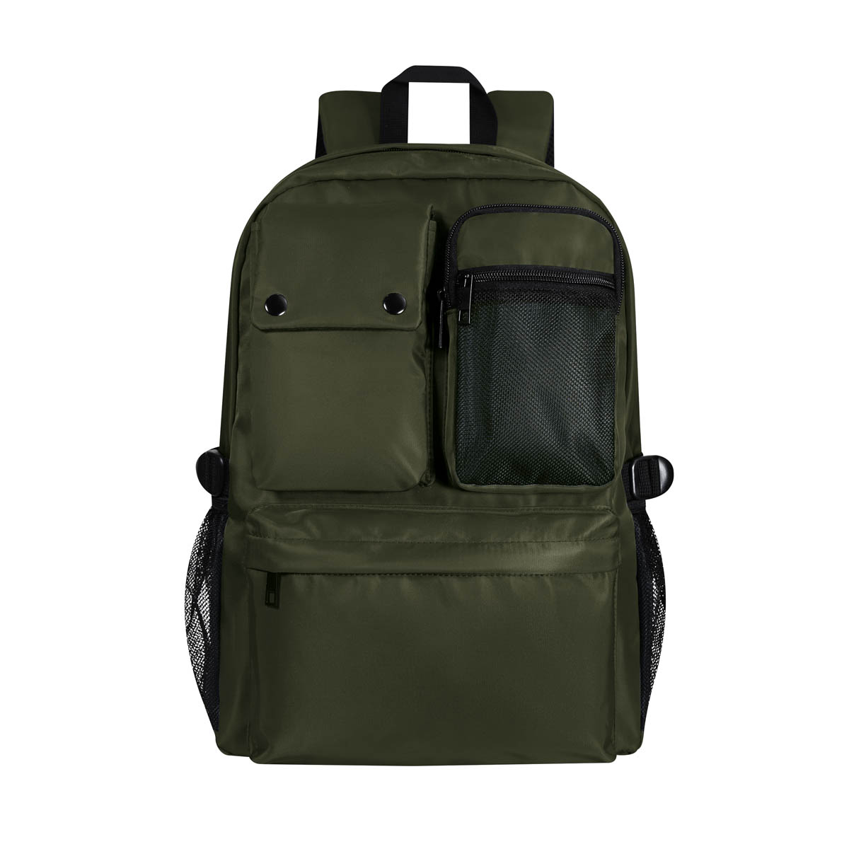 Mochila con amplia bolsa principal con compartimento interno para laptop de hasta 15” y dos bolsas internas. Cuenta con 3 bolsillos frontales, dos de ellos con cierre y uno con sistema de botones. Tiene un par de ajustadores expandibles y laterales de malla. – SIN 531