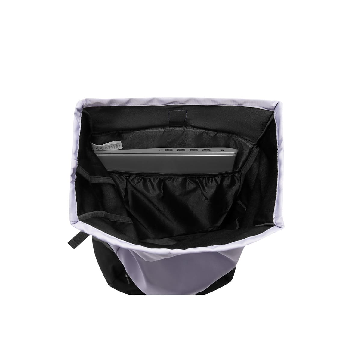 Mochila bitono con bolsa principal con cerrado de broche. Interior con compartimento para laptop de 16″. Incluye bolsillo frontal con cierre y bolsillo lateral de malla. – SIN 886