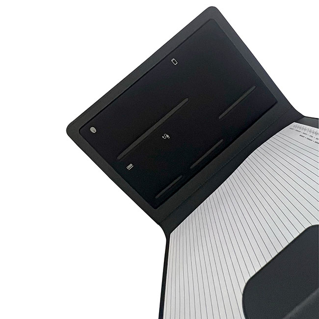 • Interior con portaboligrafos y compartimentos organizadores.