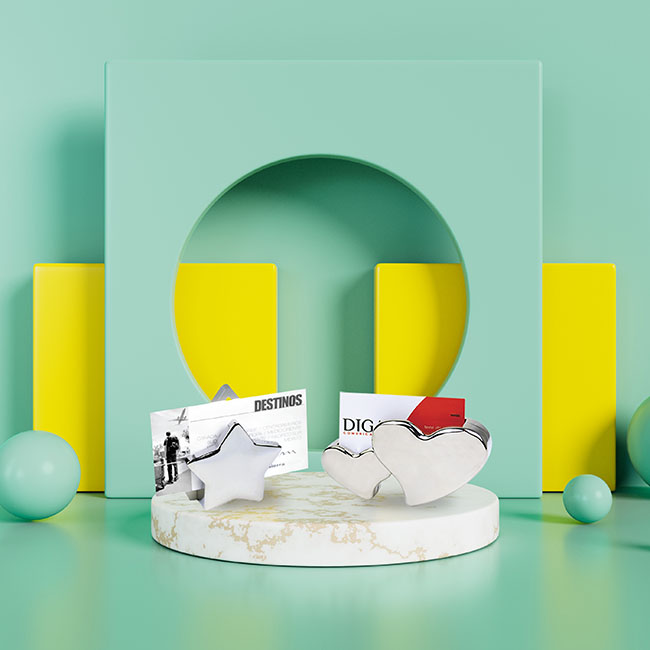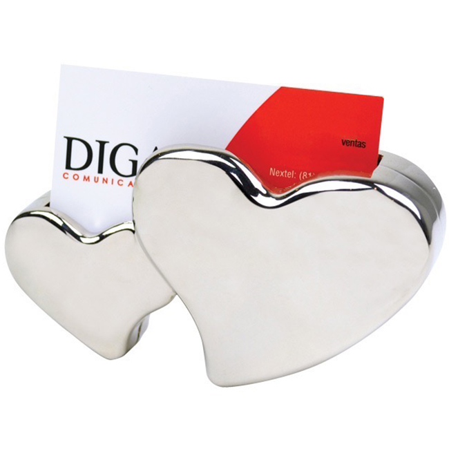 • Porta-tarjetero metalico con diseno elegante tipo “Twin Heart”.