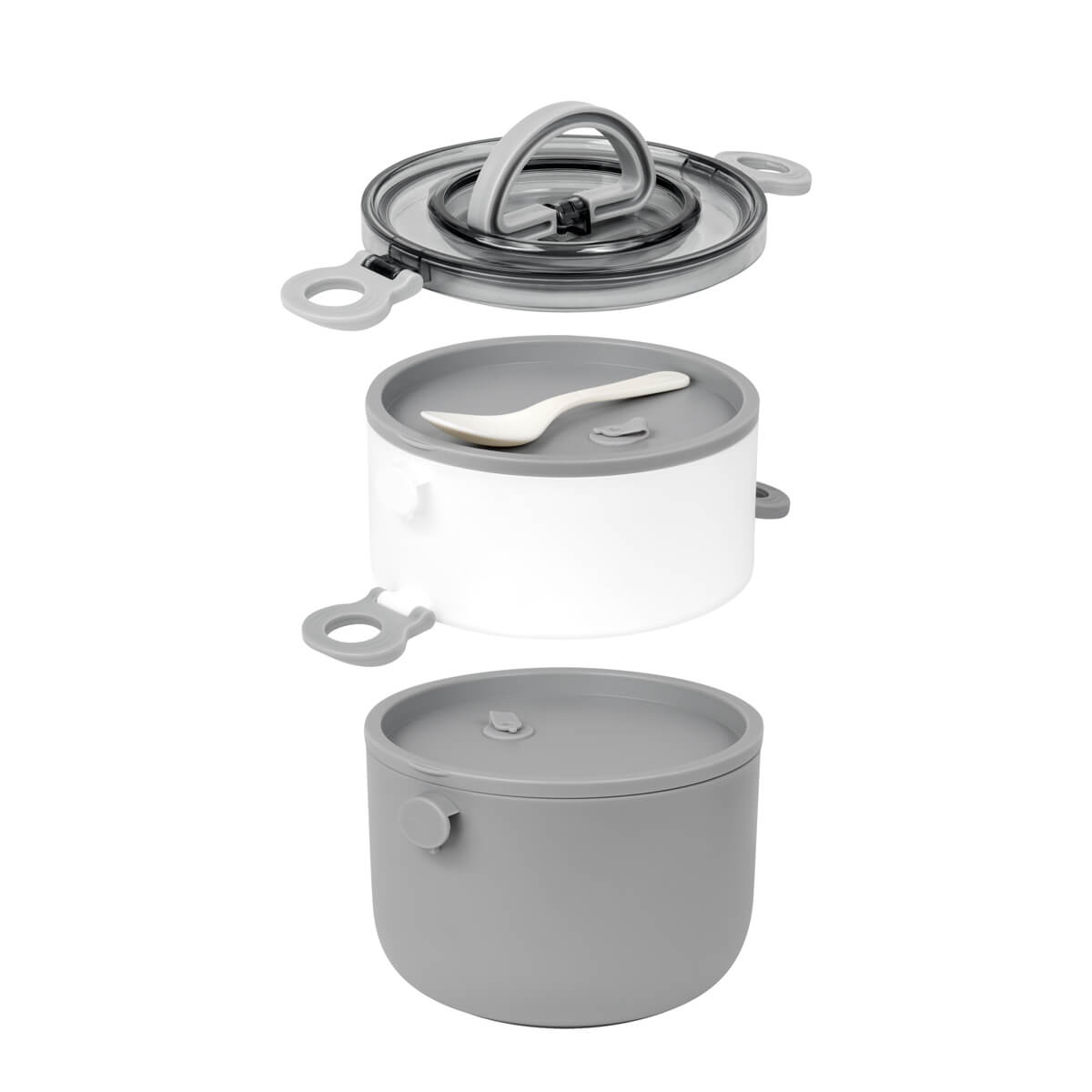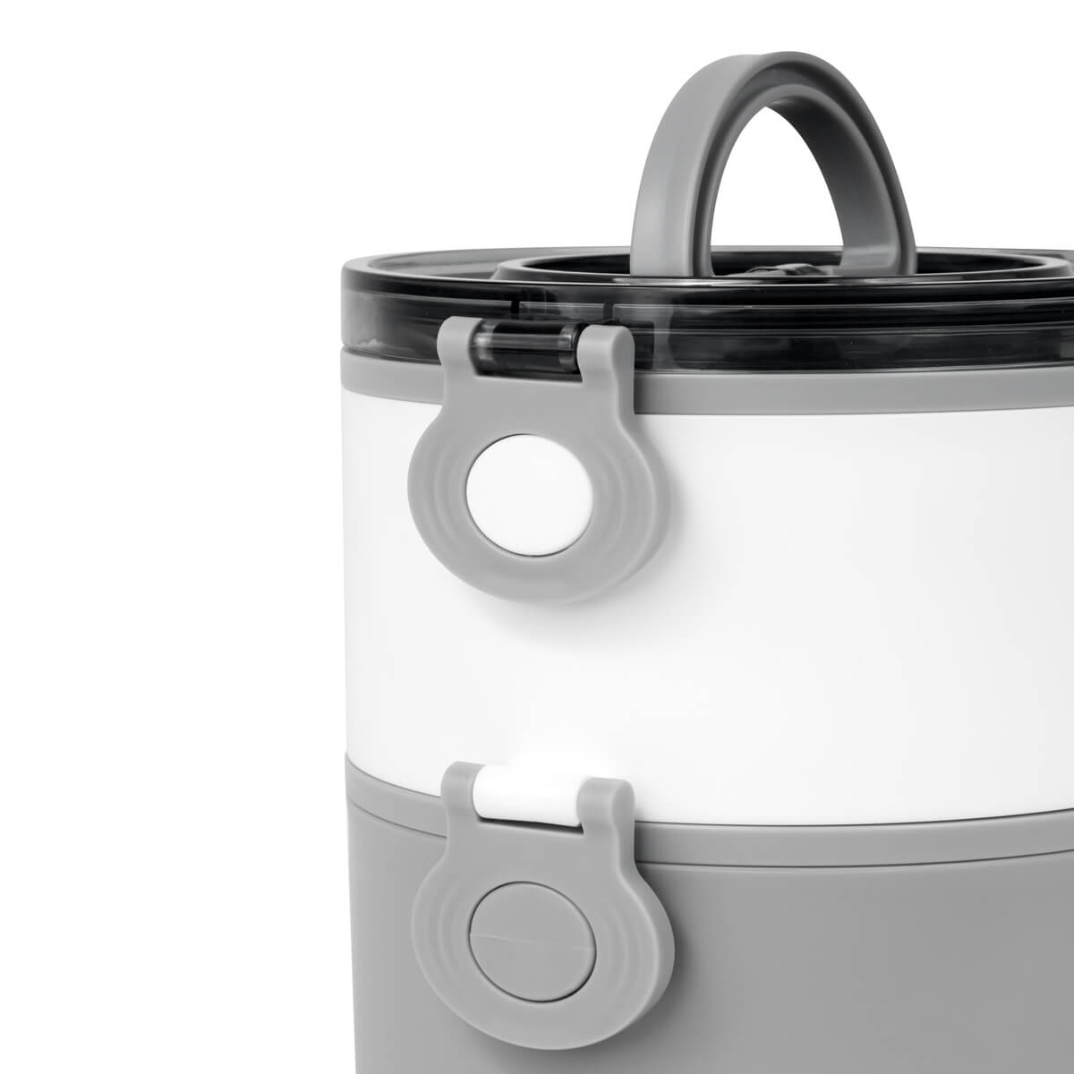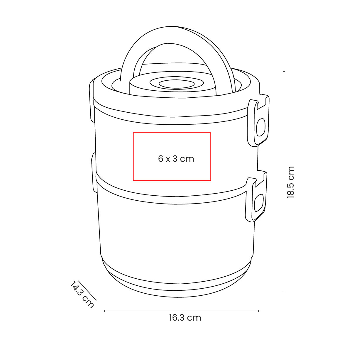Contenedor de alimentos con dos pisos independientes que permite separar tus alimentos y no mezclar sabores. Fabricado con una pared sencilla de plástico, ideal para el uso de microondas. Cada compartimento cuenta con su tapa hermética para evitar derrames y sus broches laterales ayudan unir o separar cada elemento. Incluye cuchara de plástico, tapa con asa plegable y caja individual. Apto para el uso en microondas y lavavajillas. – KTC 605