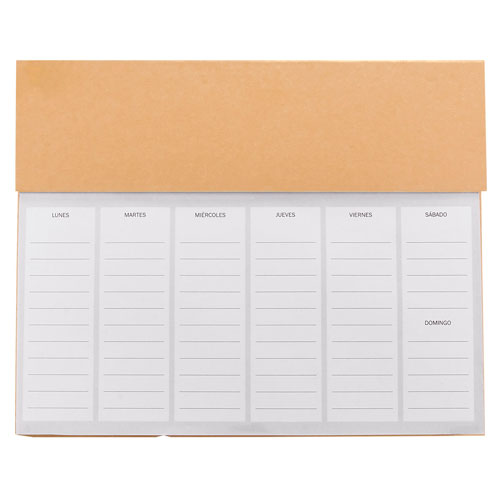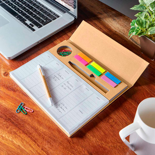 Programador semanal con 100 hojas. Incluye bolígrafo ecológico, clips y banderillas adheribles de 6 colores. – HL 6280