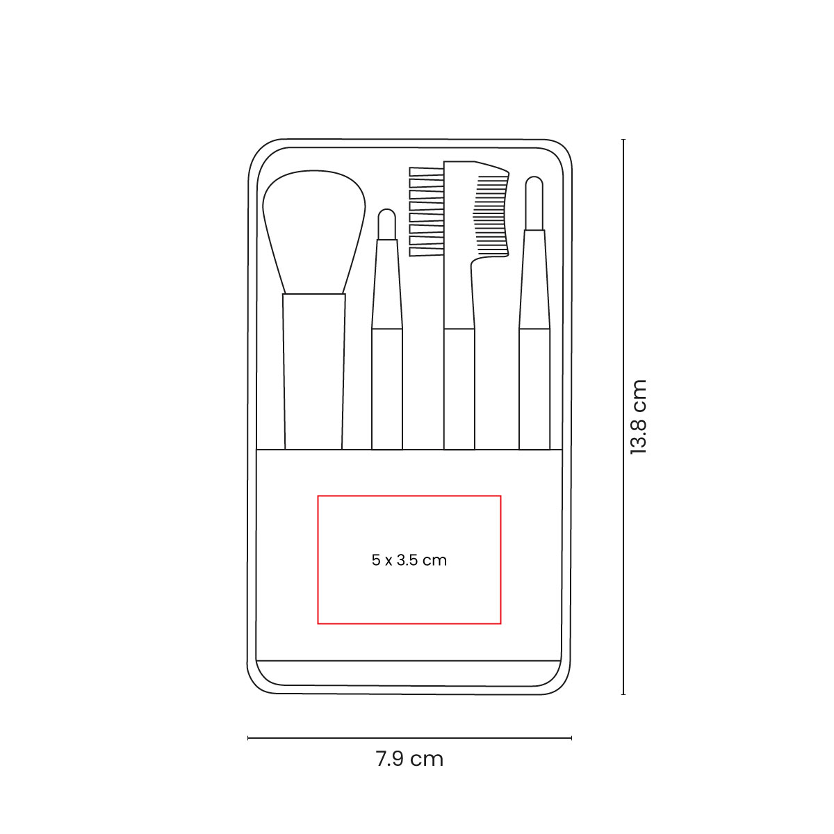 Estuche de plástico con 1 brocha para sombras, 1 brocha para labios, 1 brocha para rubor y 1 peine para cejas y pestañas. – DAM 029