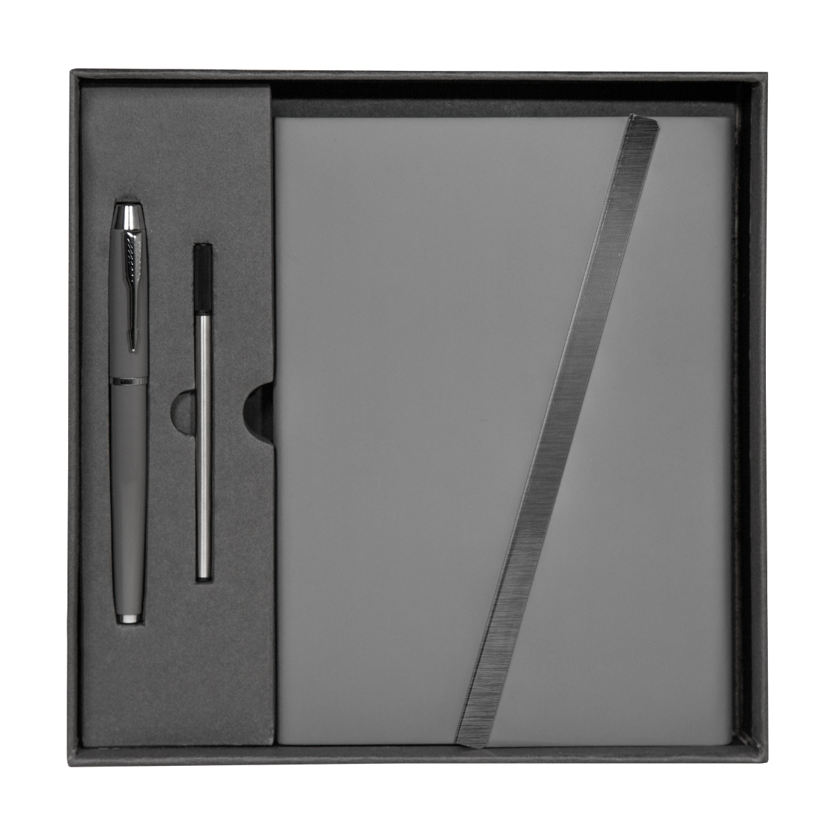 Set de regalo que incluye una libreta de 80 hojas a rayas, con pasta rígida y solapa magnética, un bolígrafo metálico y un repuesto de tinta adicional. Caja de regalo incluida. – HL 9041