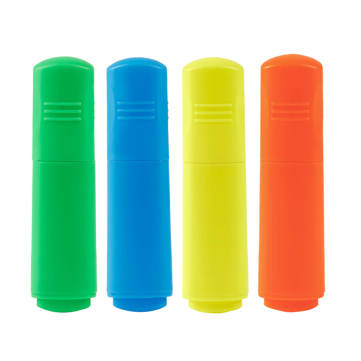 Incluye 4 marcatextos en colores azul, amarillo, verde y naranja, en un práctico estuche ecológico con ventana. Diseño compacto, ideal para oficina o escuela. – EST 100