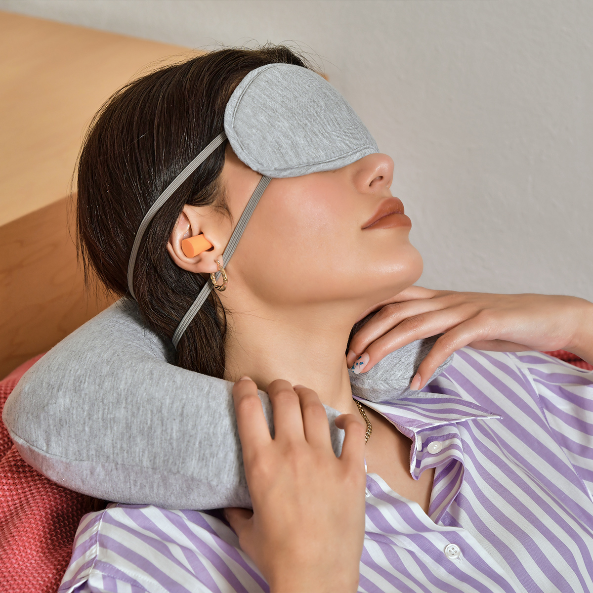 Incluye almohada de viaje inflable, antifaz con elástico ajustable, estuche de plástico con dos gomas para los oídos, cepillo dental plegable y bolsa con jareta. – PRO 003