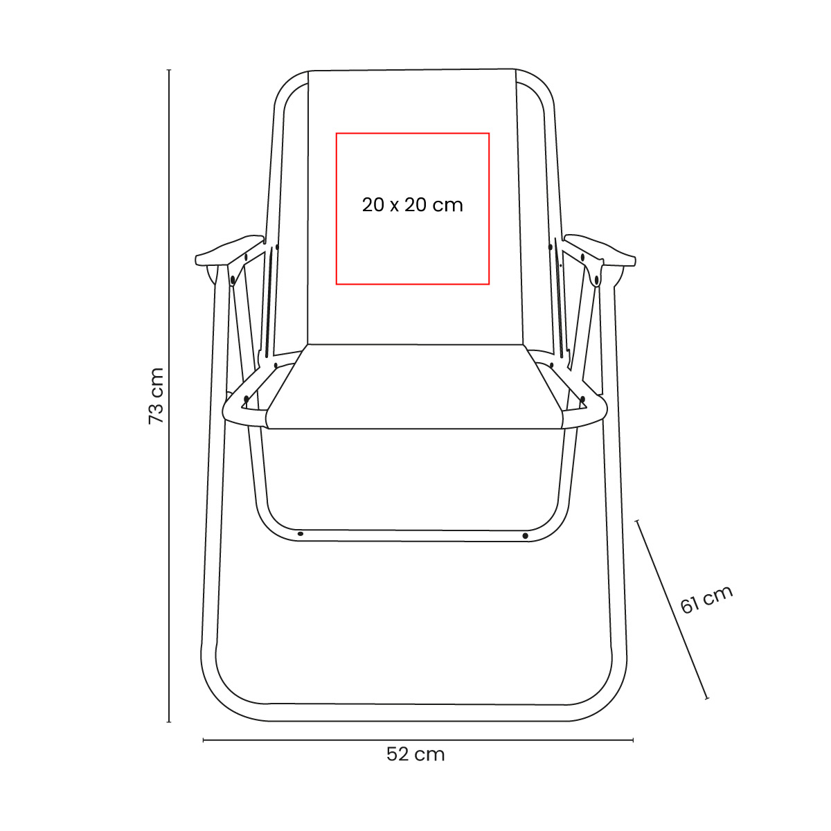 Silla plegable con descansabrazos. De estructura ligera, fácil de armar y guardar, ocupando poco espacio al estar plegada. – KTC 043