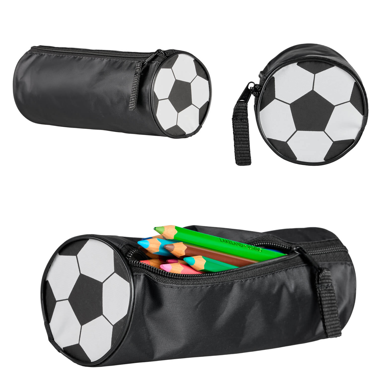 Lapicera de poliéster con print de balón en los laterales y cierre. – 4P-O 160