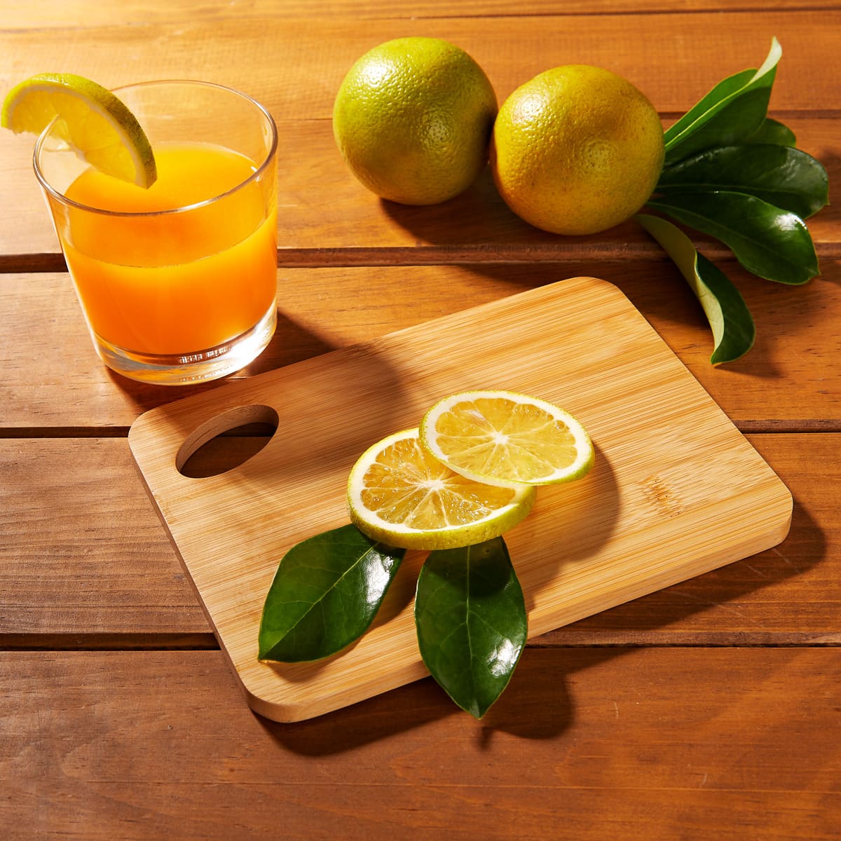Tabla para picar hecha de bambú. Tiene un tamaño compacto perfecto para espacios reducidos en la cocina. Cuenta con orificio en una de las esquinas que permite colgarla fácilmente cuando no está en uso. Incluye caja individual. La madera es un producto natural el cual puede presentar variaciones en tonalidades y vetas. – PWT 260