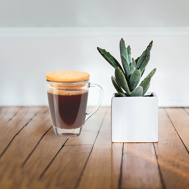 • Tapa de bambu con banda de silicon para cierre a presion.